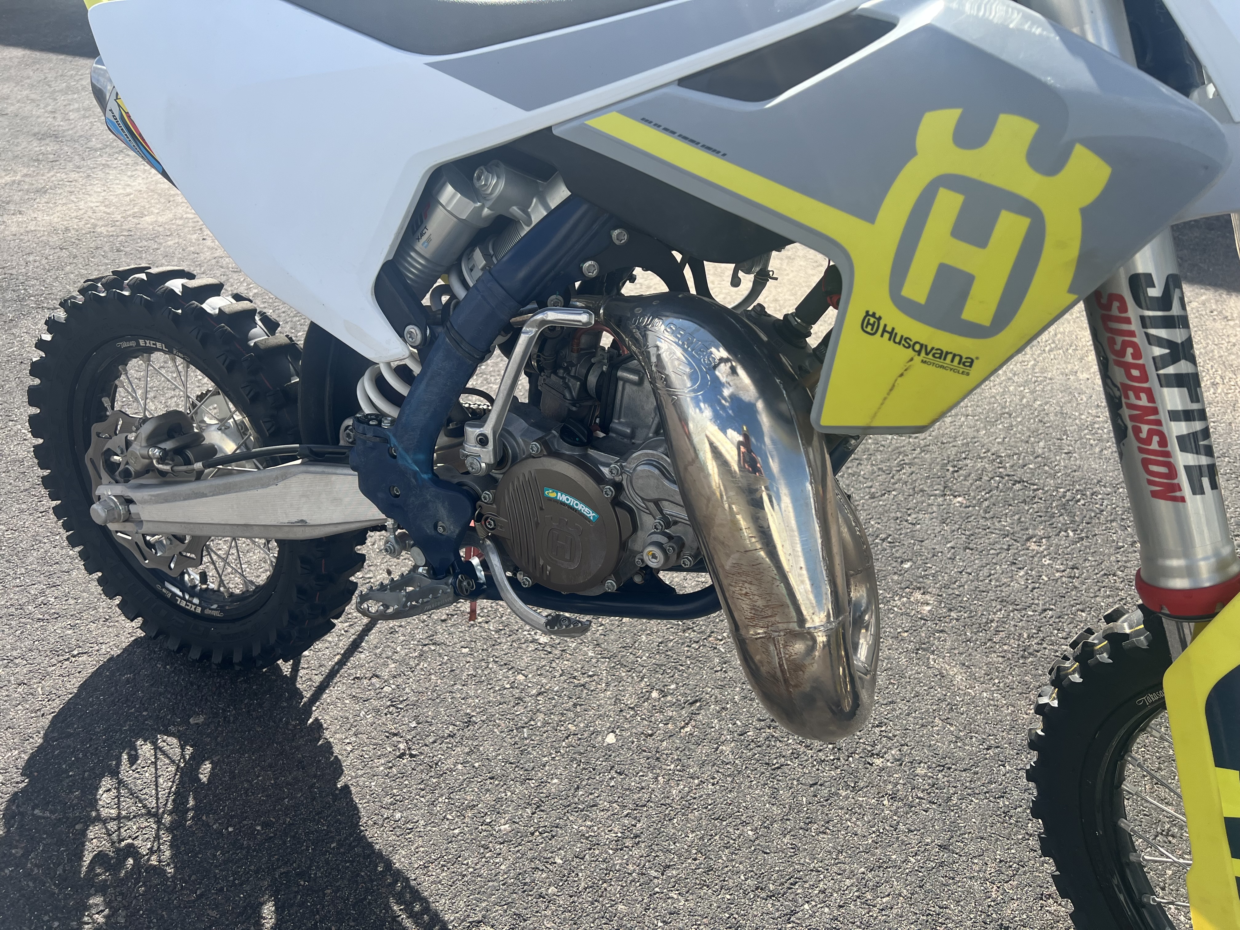 The WP XACT PDS shock absorber is fitted to the TC 85. PDS, "progressive damping system," allows the rear end to stay stable over smaller bumps or rough terrain while also soaking up bigger hits with ease.