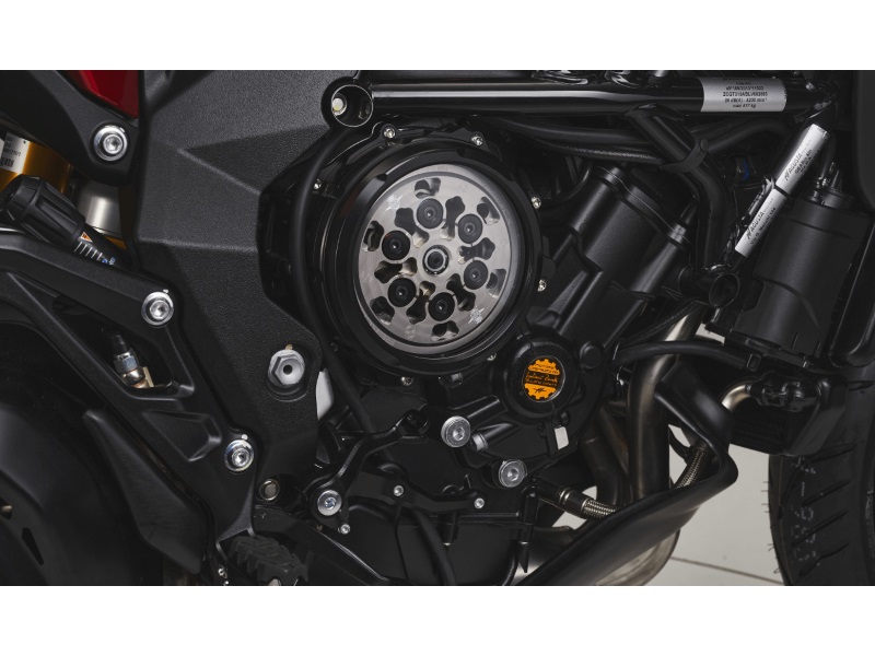 Progressive Sachs, semi-active single shock absorber with hydraulic spring preload adjustment MVCSC (MV Agusta Chassis Stability Control)