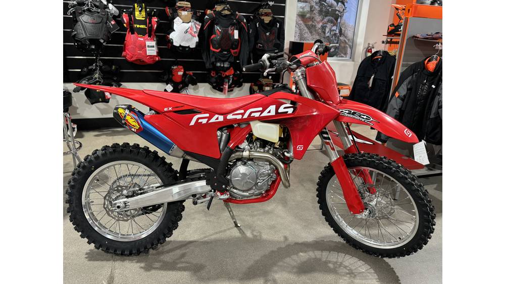 - Big power on tap! The EX 450F motor delivers monstrous amounts of torque from its compact SOHC motor, which our engineers have reduced in weight for 2024. We don't need to tell you that the EX 450F absolutely rips but thanks to a little engineering wizardry, and a slight tilt backwards in the frame, the motor further centralizes mass in addition to significantly improving anti-squat behaviour. In short, this bike handles like a dream.