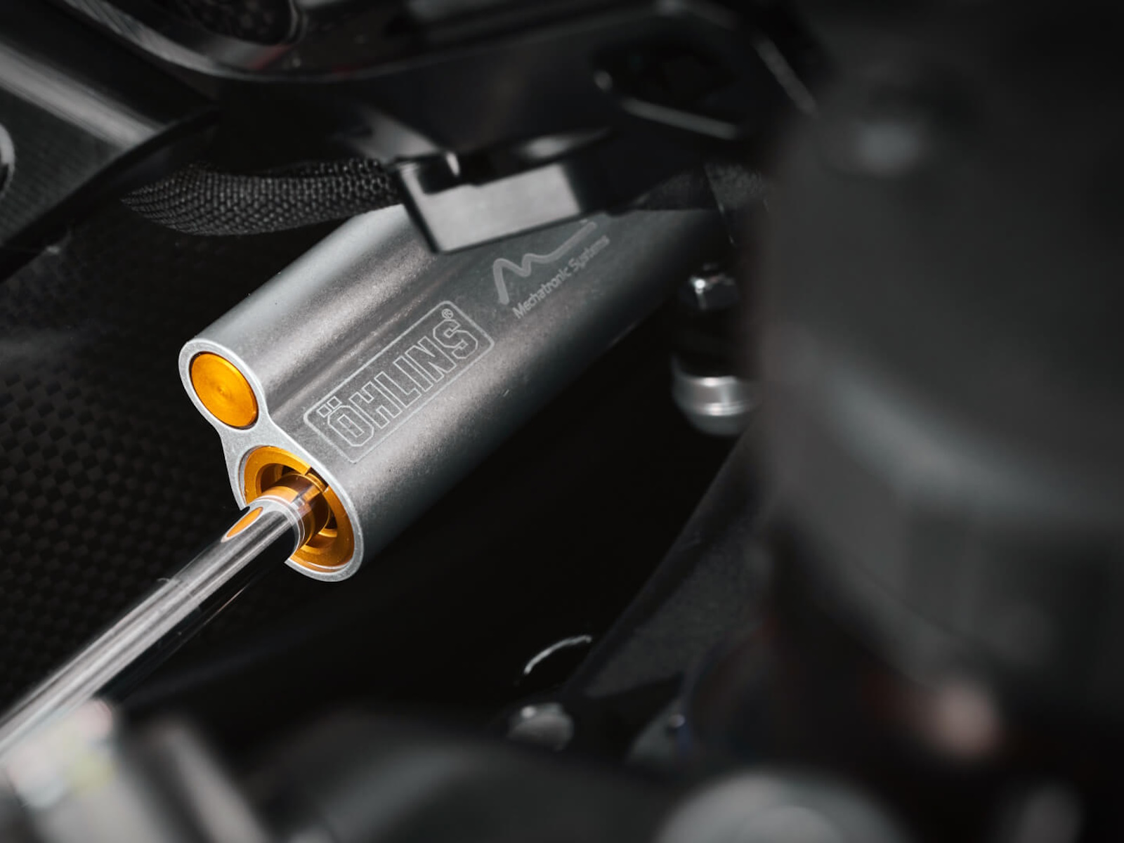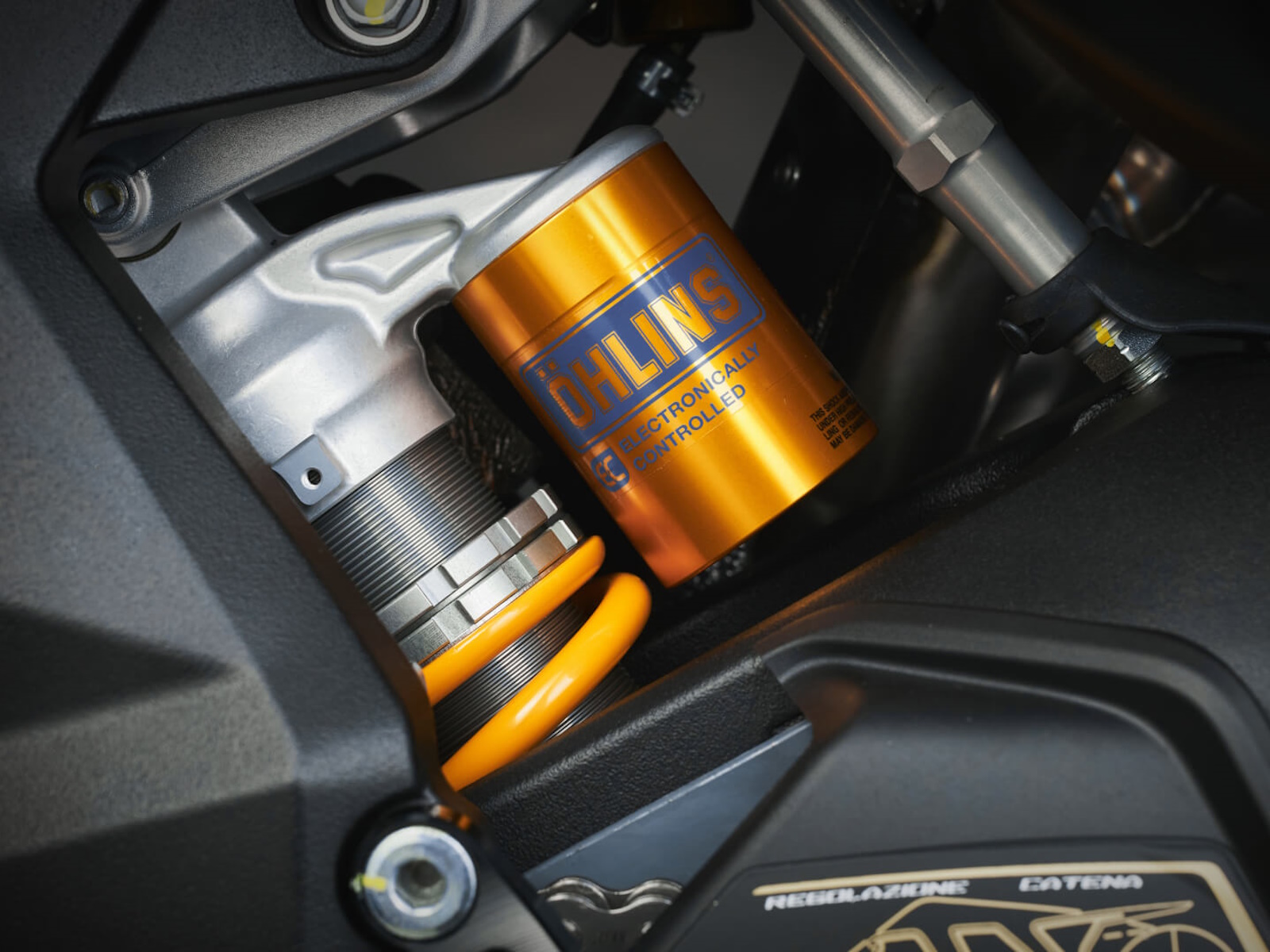 Progressive, single shock absorber Öhlins EC TTX completely adjustable with electronically controlled compression and rebound damping and spring preload