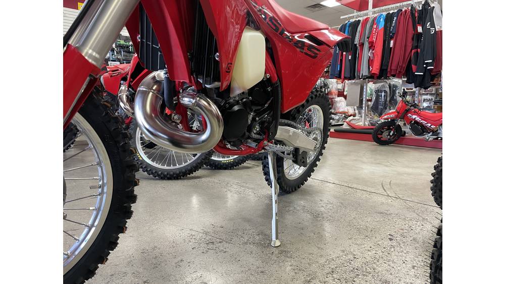 Super slim and made from transparent polythene, the fuel tank lets you see how much fuel is inside while a threaded filler cap provides a secure and reliable seal. Beneath the fuel tank is a stronger support made from rubber that not only helps hold the tank firmly in place but protects the frame from wear as well. With an integrated fuel pump allowing the tank to be emptied further before refueling, extended rides are not a problem for this GASGAS!