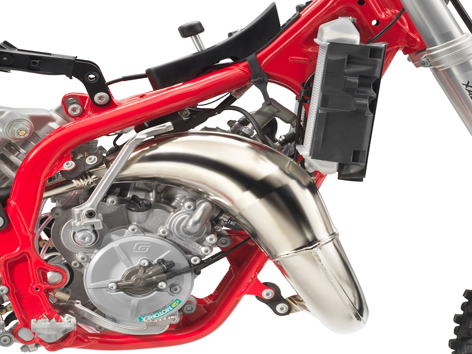There's a lot to shout about when it comes to our MC 65 motor! For tighter tolerances around the crankshaft, the crankcases are machined after being manufactured, with the end result being no lost power. Beyond that, there's a close-ratio 6-speed transmission, hydraulic clutch, BRISK spark plug, and a Pressure Controlled Exhaust Valve that really makes this little bike sing!