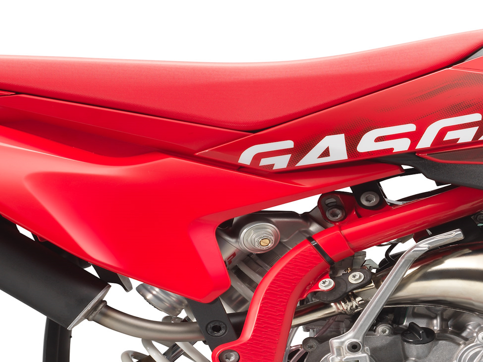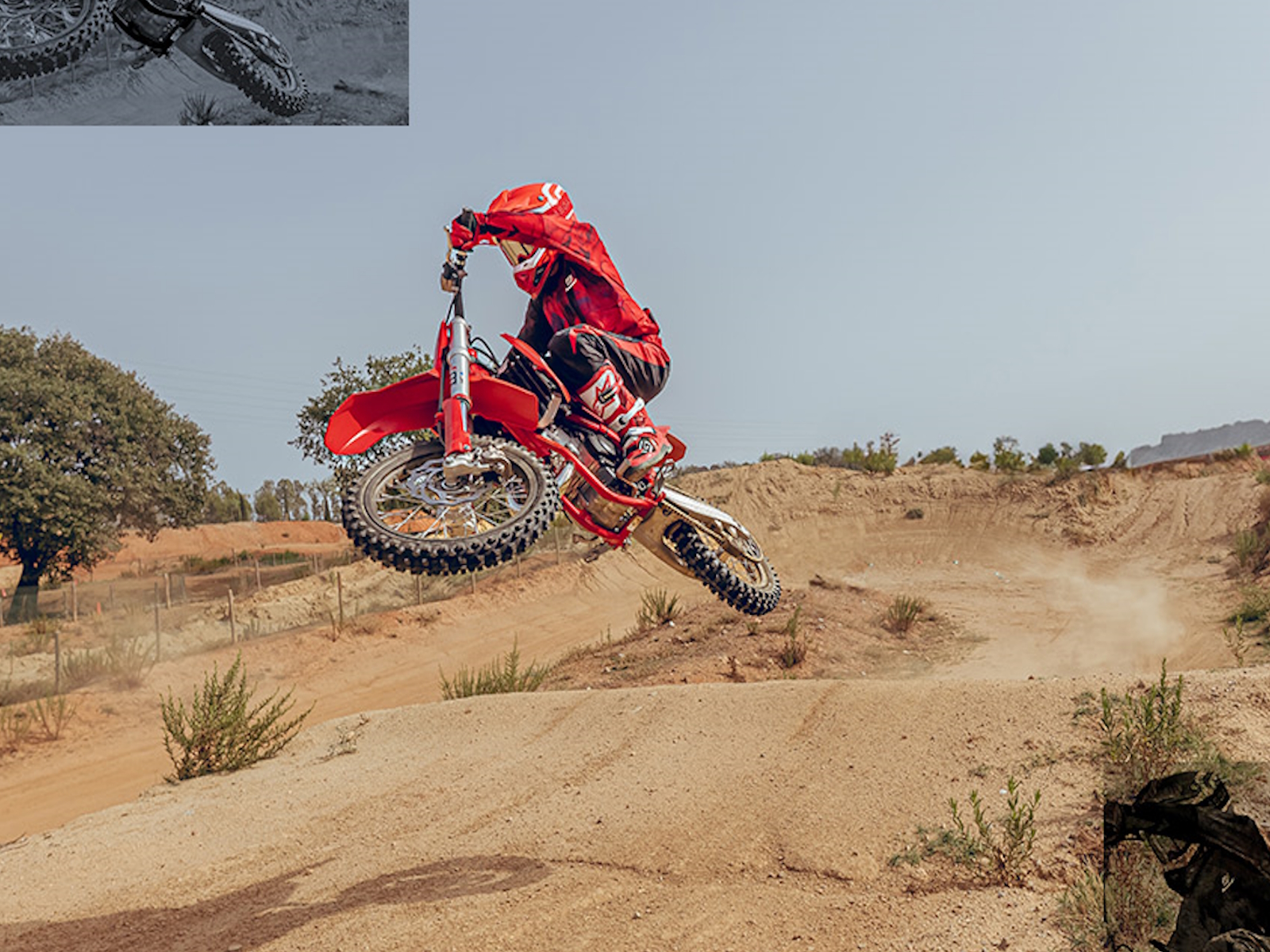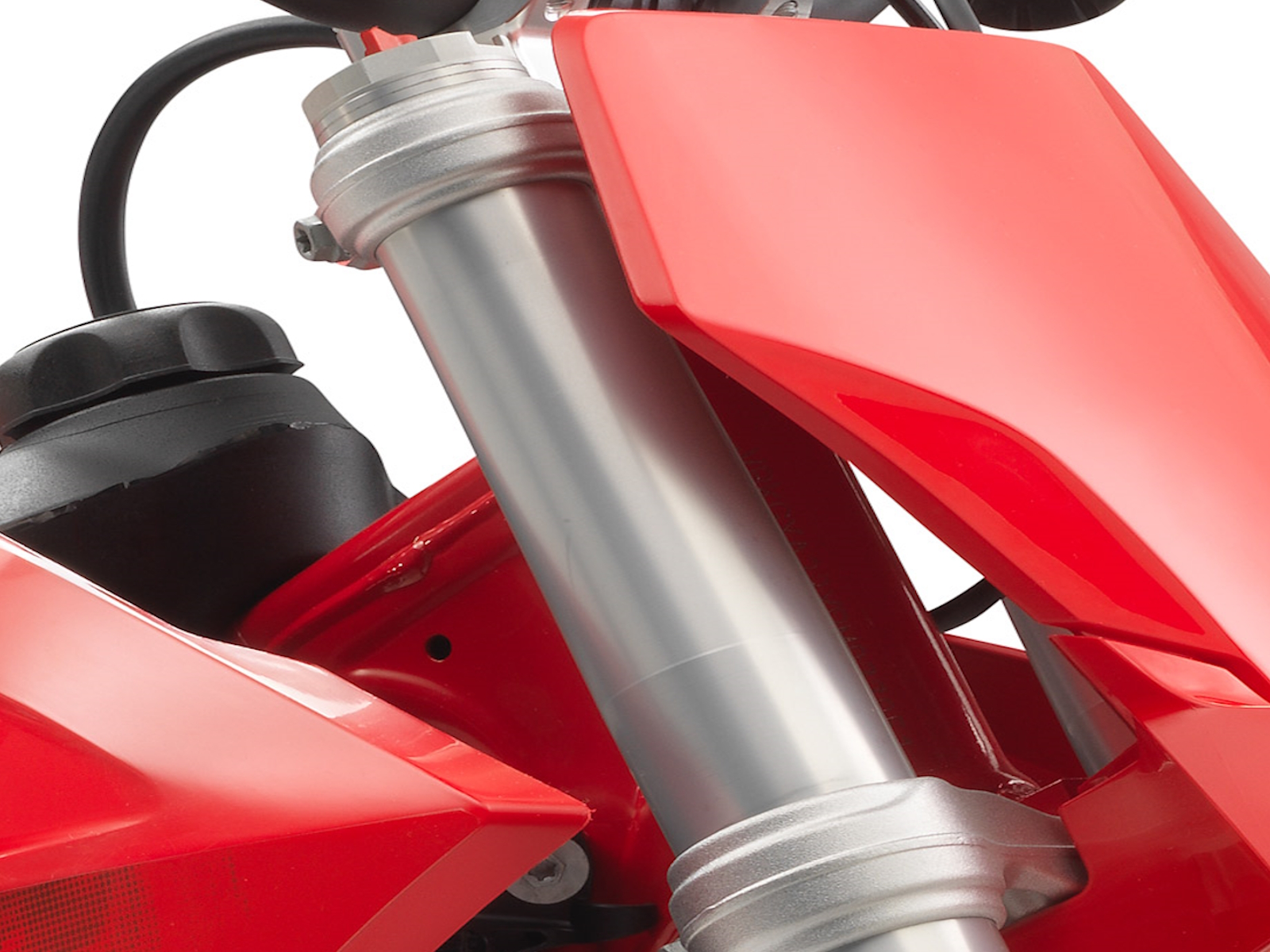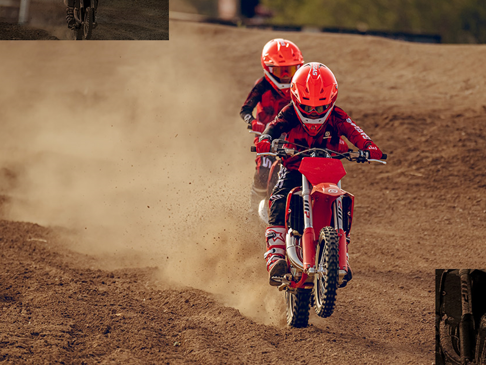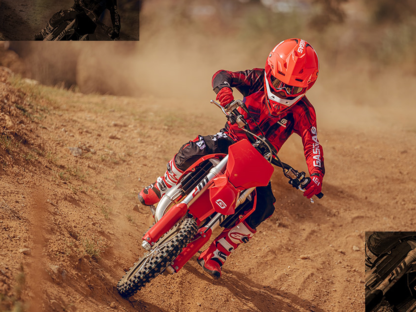 Our awesome little MC 65 is where riding pure motocross really begins. With its smooth-shifting manual transmission, this might be the first dirt bike on which kids learn how to change gears and, most importantly, when to do so to find the fast way around any circuit. Beyond this, the MC 65 is assembled with plenty of parts that you'll find on our bigger motocross bikes, but obviously scaled down to fit, underlining just how serious we are about making a competitive 65cc machine. We're talking the hydraulic clutch, all-red bodywork, MAXXIS tires, TWIN AIR air filter, and WP suspension. Yeah, we're stoked on our MC 65 and we know you will be too.