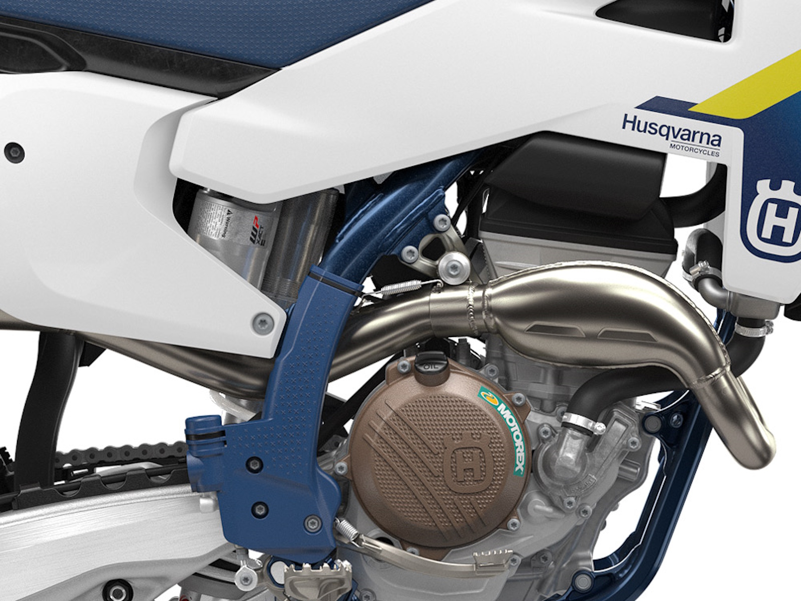 Widely praised as the best performing 250 cc 4-stroke on the market, the FC 250 retains its position at the head of the field. A compact and powerful engine is housed inside in an updated chromium molybdenum frame that is lower in weight and offers improved chassis flex. Updates to the WP suspension and rear shock linkage ensures the outstanding agility of the FC 250 is enhanced further for 2025. Its new bodywork offers refined ergonomics for effortless movement and control, with striking white and blue graphics applied using in-mold technology for an outstanding and long-lasting finish.