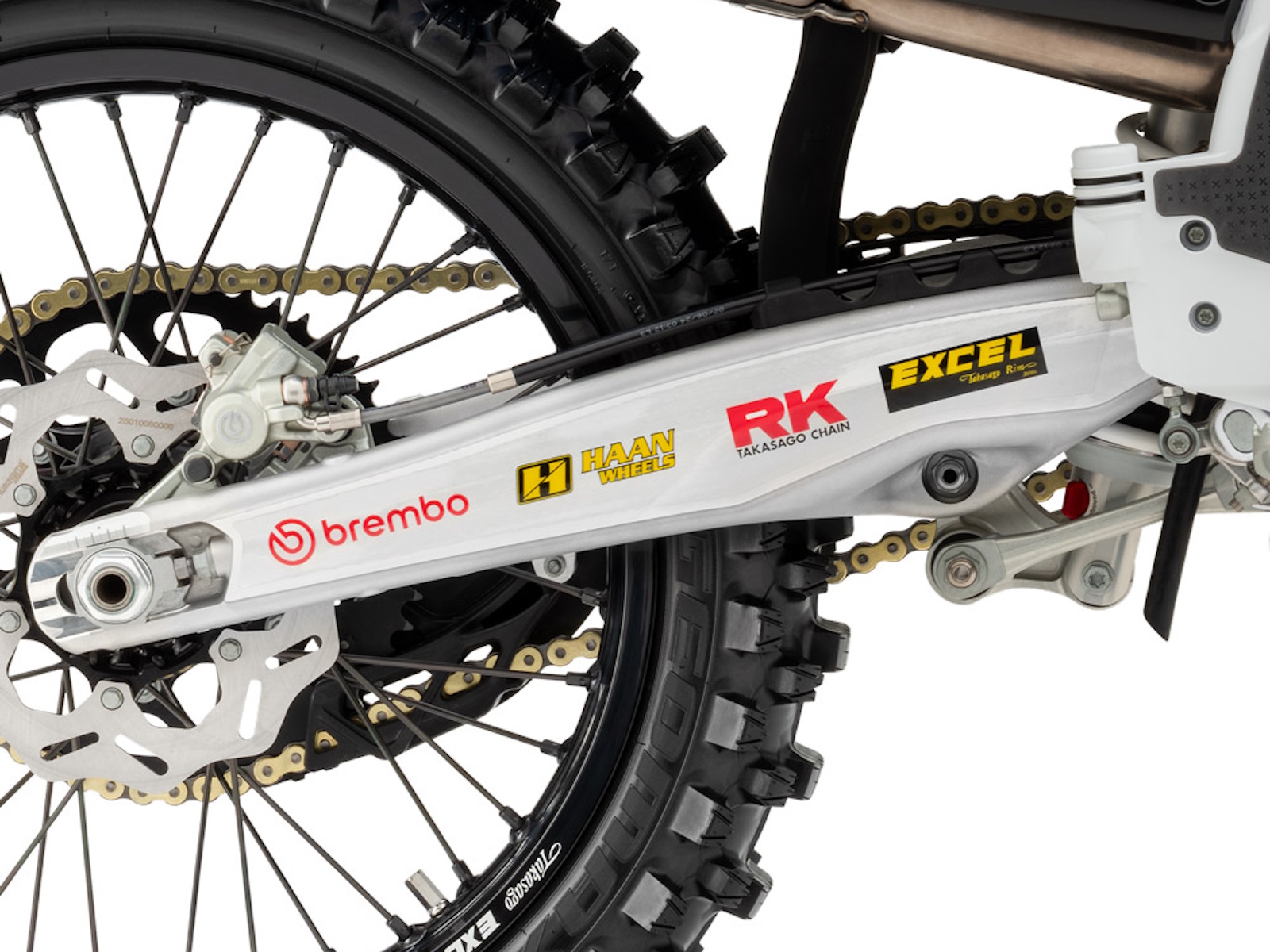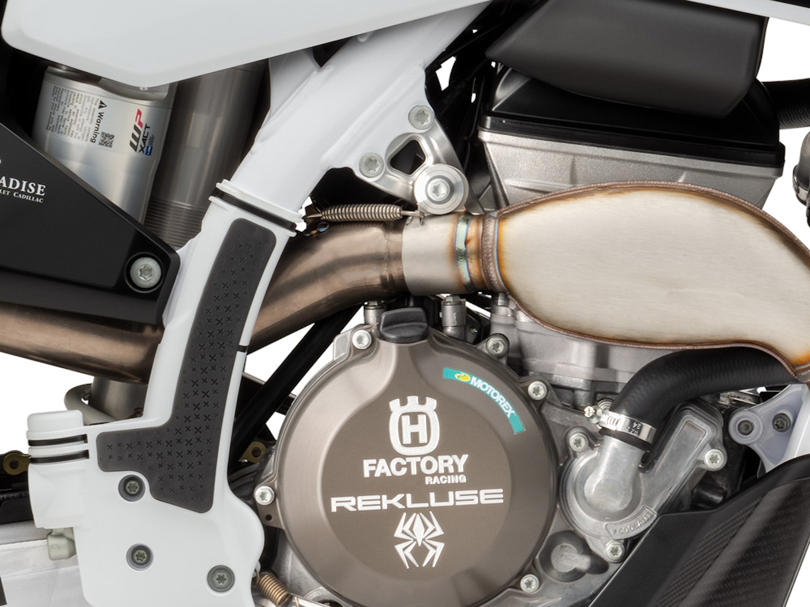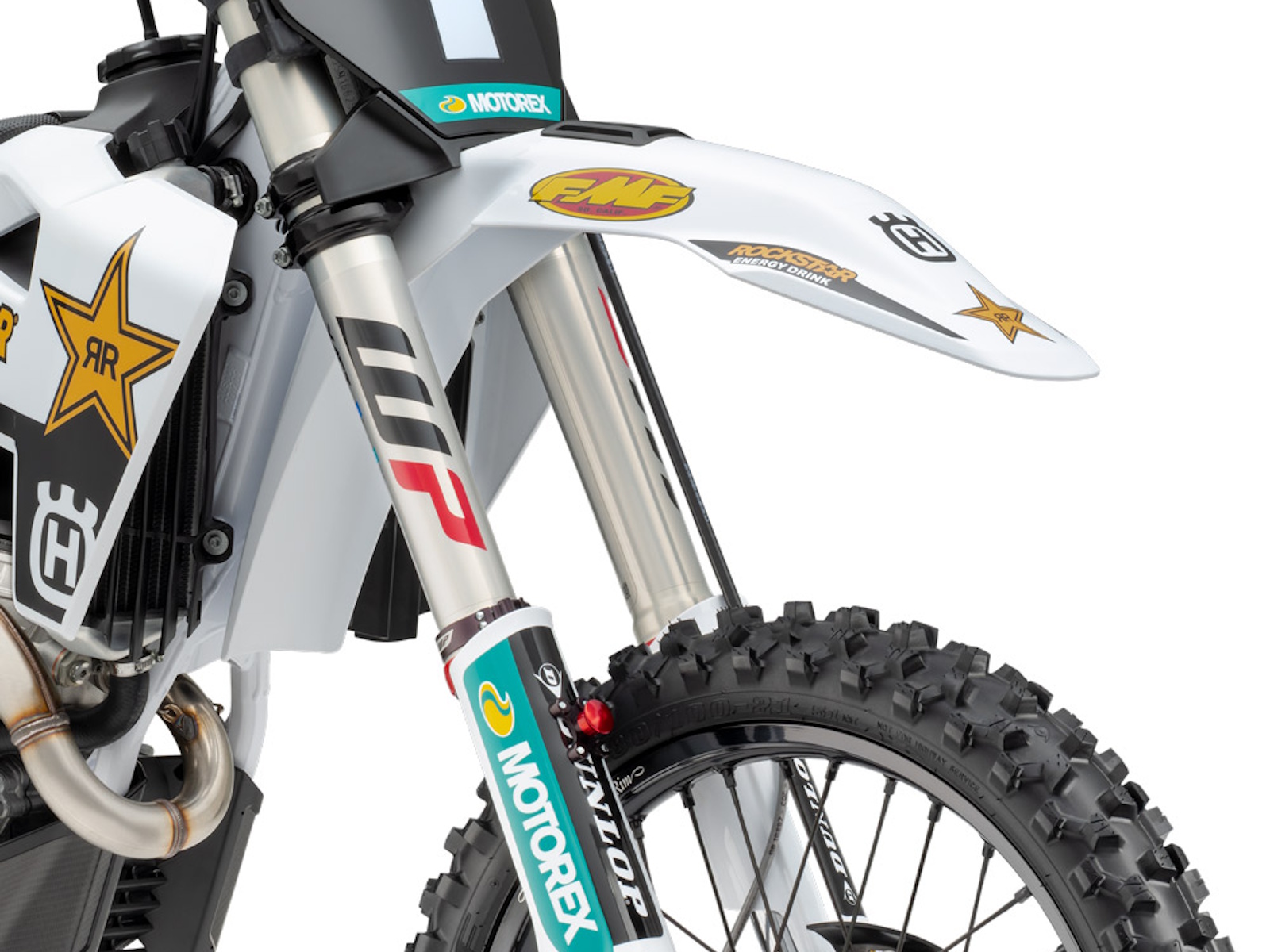 The 2025 FC 250 Factory Edition provides serious racers with a machine designed and built for winning. A competition-focused evolution of the class-leading FC 250, the Factory Edition model is enhanced with multiple electronic rider aids and the very best Technical Accessories for a superior riding experience. Quality, race-tested components including an FMF silencer, Dunlop tyres, and the latest WP XACT suspension underline the premium specification of the machine that is finished with the latest Rockstar Energy Husqvarna Factory Racing graphics for a true race team look.