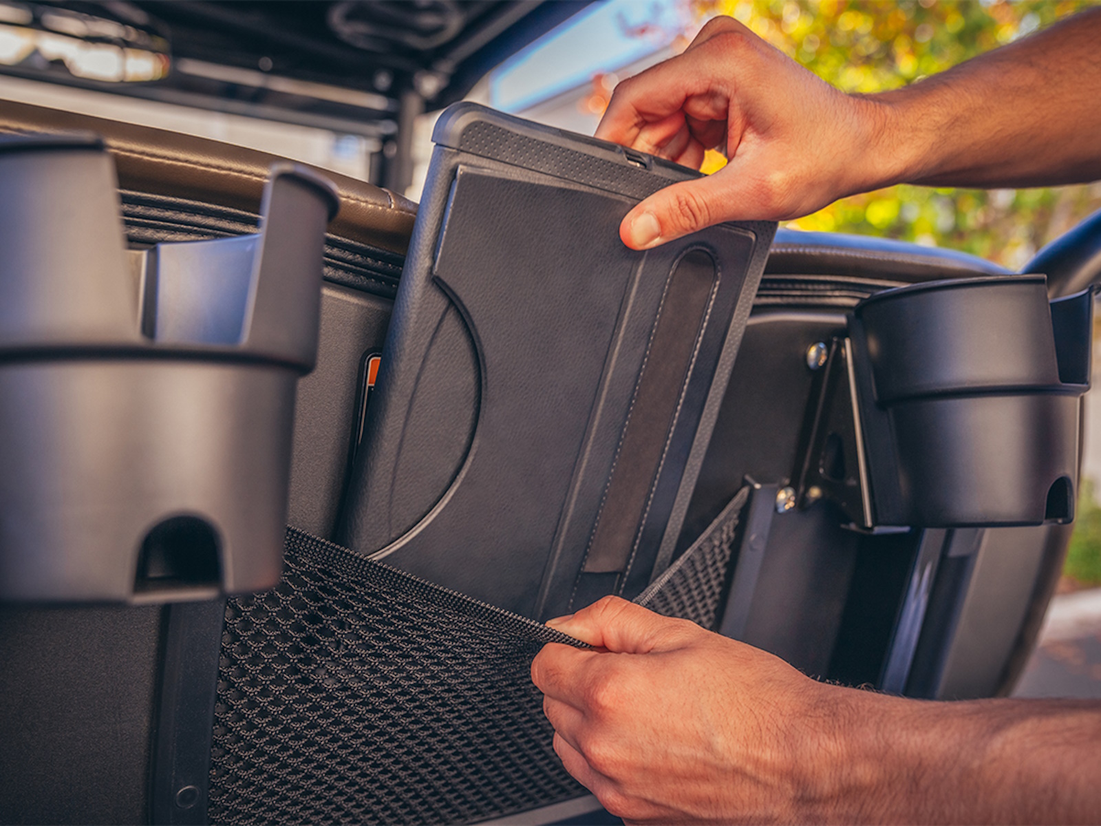 - Storage net attached to the back of the front seat