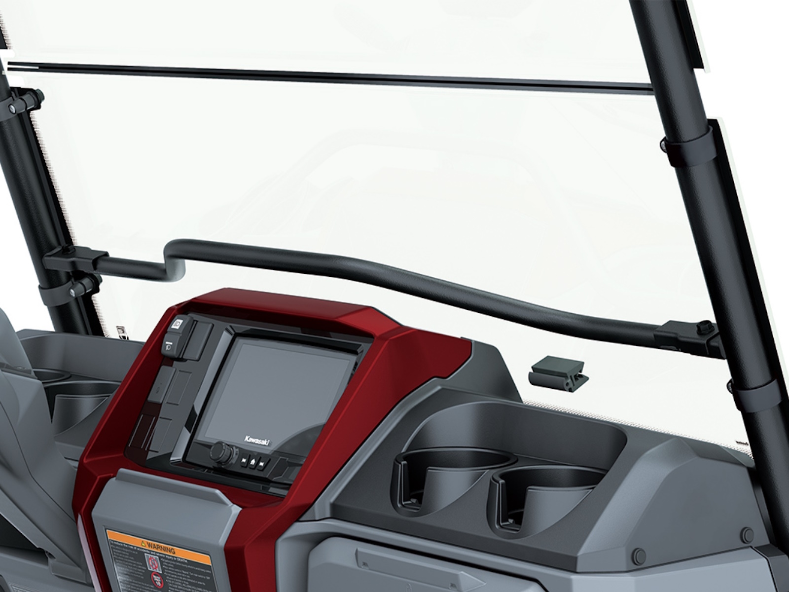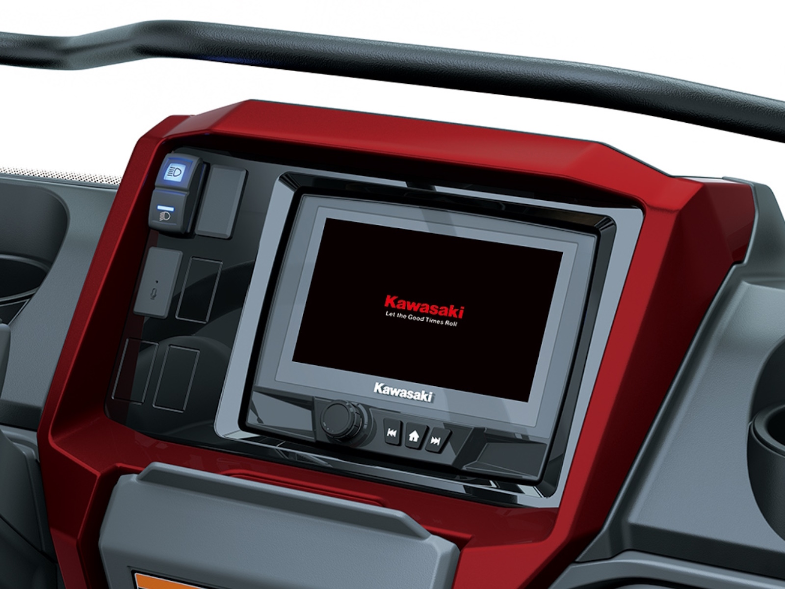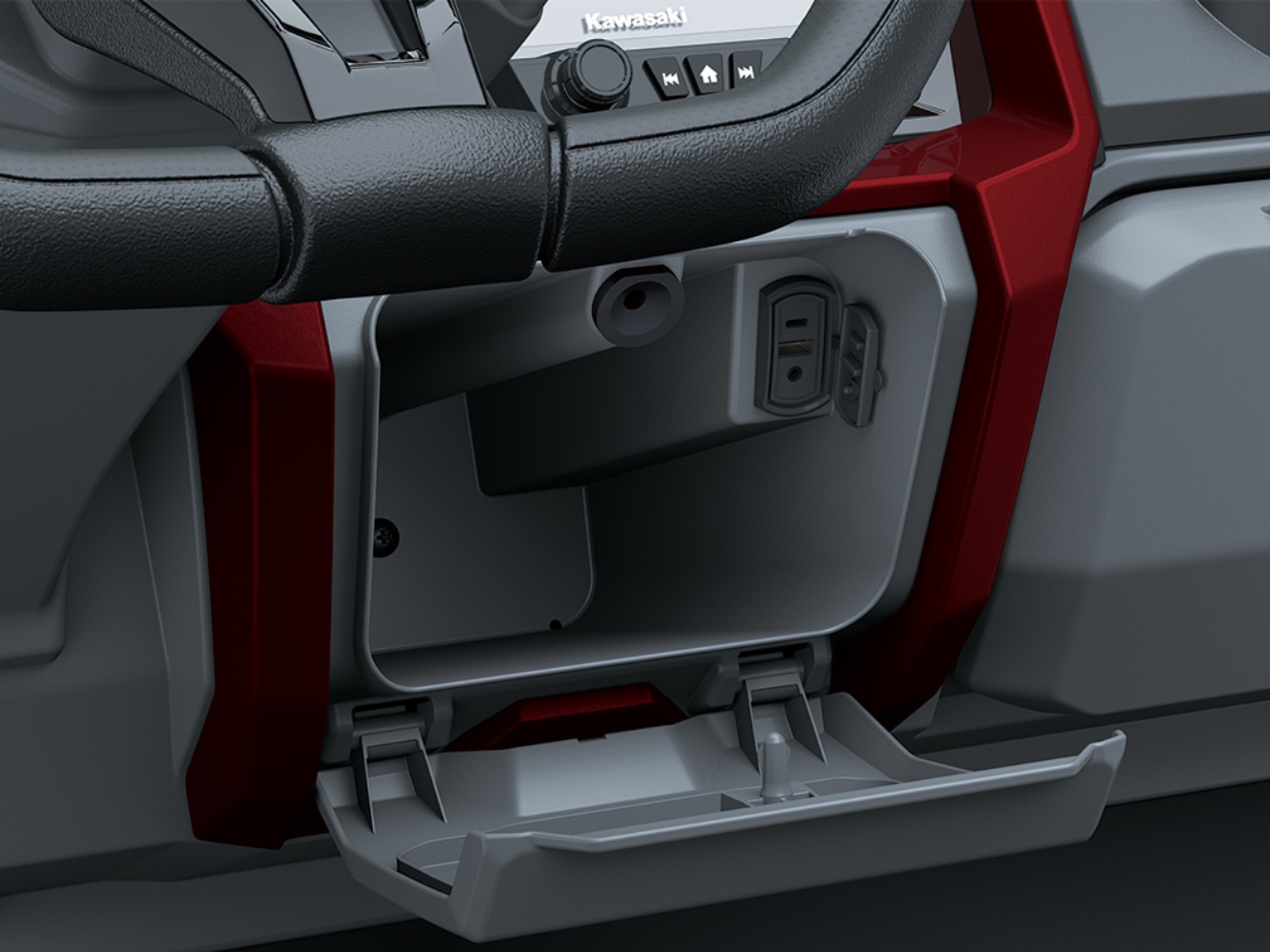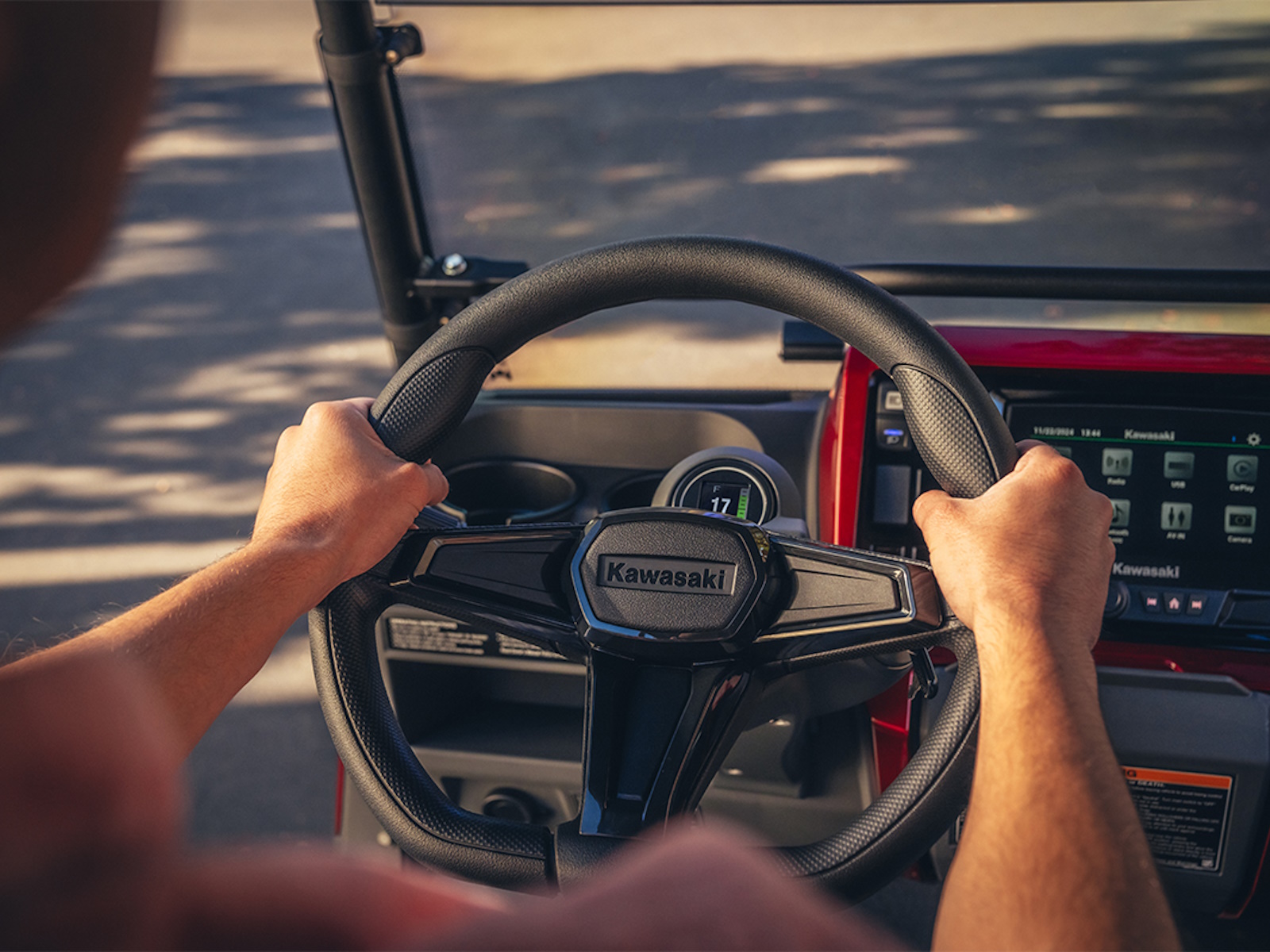 - Steering wheel features Kawasaki emblem and decorative covers