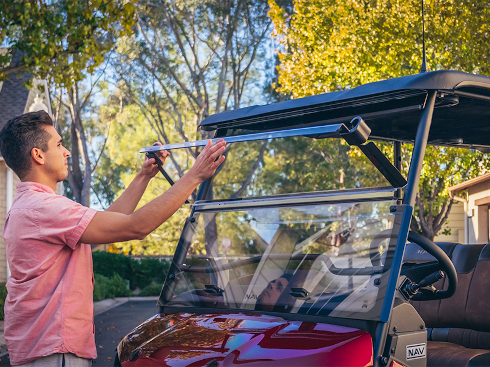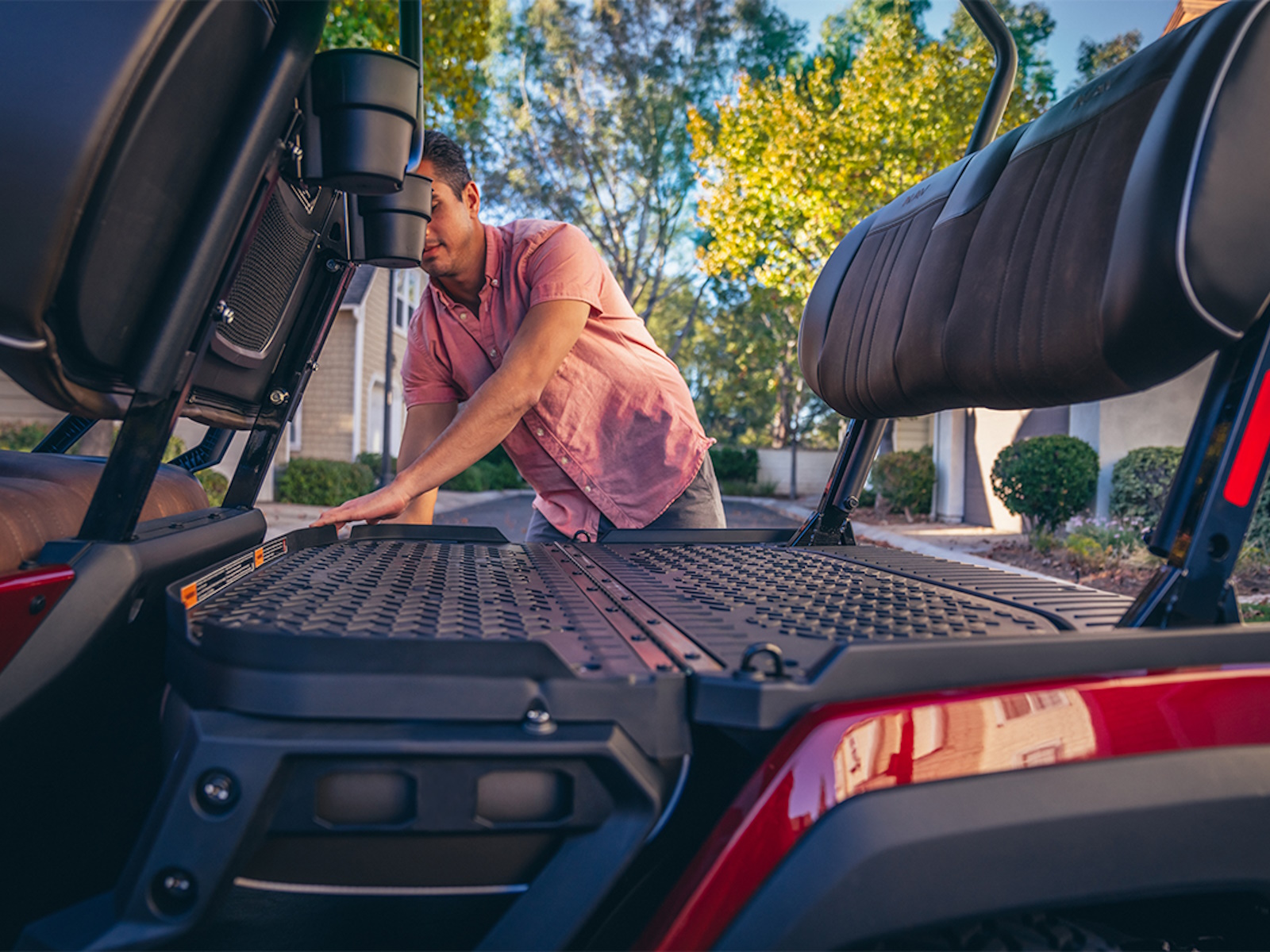 Meet the NAV®: our first-ever Personal Transportation Vehicle (PTV) designed for cruising the good life. With premium, sporty design and comfort for the whole family, the NAV isn't just another ride. It's a game changer for the PTV market. Thoughtfully equipped with a category-first fold-flat seat, expandable front and rear storage, cupholders, USB ports, and all-LED lighting, the NAV is as functional as it is fun. So, you can cruise from the pool to the BBQ to the pickleball courts—and beyond.