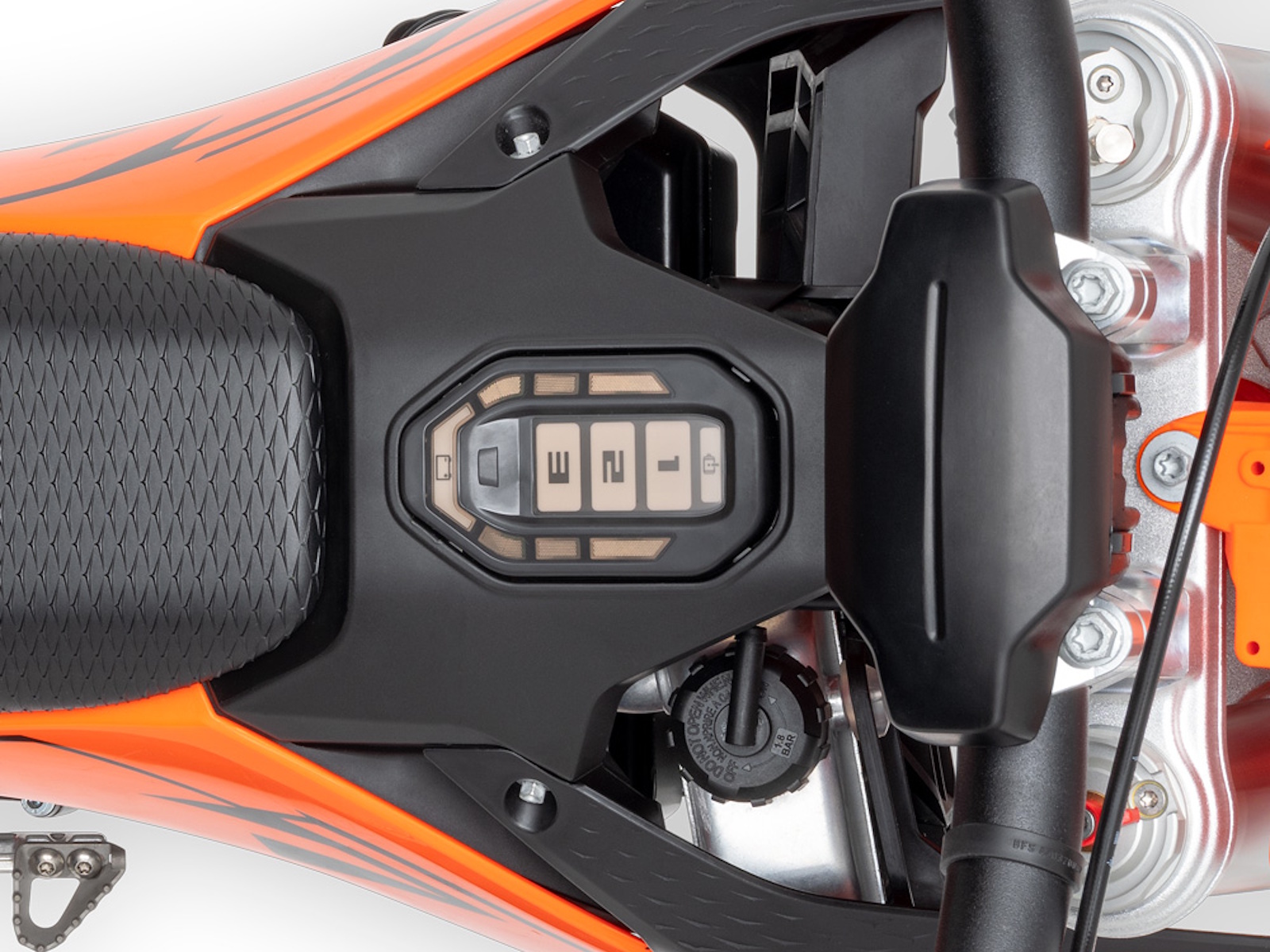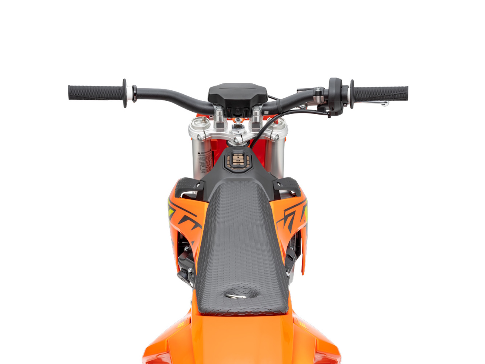 The KTM SX-E 5 represents a new generation of advanced all-electric mini-cross that will entice and empower the next generation of KTM motorcyclist. Aimed at both beginner and competitive junior racers and with benchmark adjustable ergonomics - allowing the bike to 'grow' with the user - the KTM SX-E 5 is a high-quality and prime real-world READY TO RACE alternative to the gas-powered 50 cc engine. The KTM SX-E 5 is not a toy: this is a bona fide platform for juniors that are finding all the joys of having a throttle in their right hand without the complications of emissions, complex maintenance, and noise. Whether riding, practicing or racing, the fresh KTM SX-E 5 is both everything they ever wanted and everything they'll ever need. This motorcycle is designed, developed, and produced in Austria.