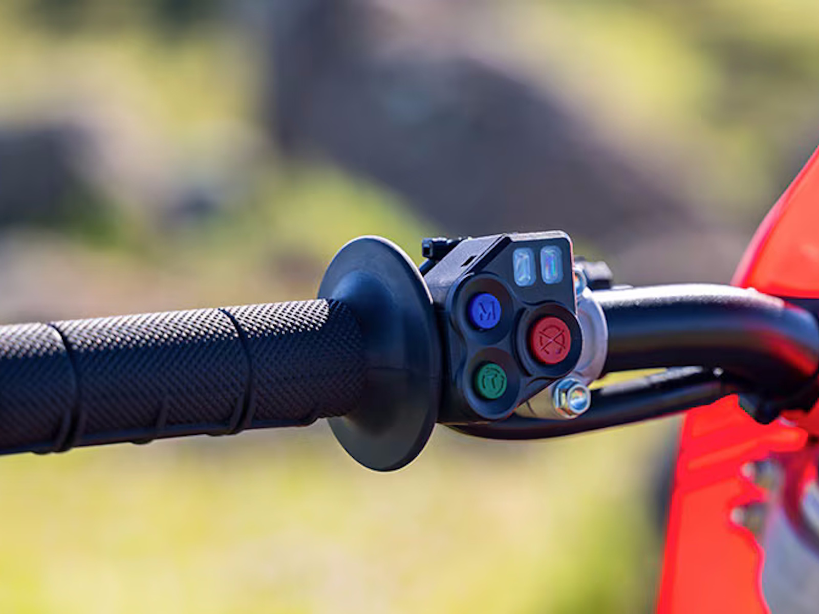 - Customize your engine's power delivery on the fly with the convenient left-side, handlebar-mounted blue button. It allows you to effortlessly switch between Standard, Smooth, and Aggressive modes to suit varying track conditions or rider preference.
