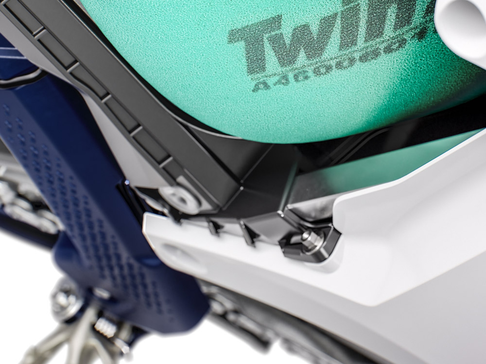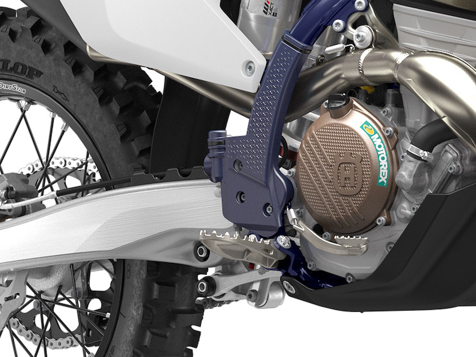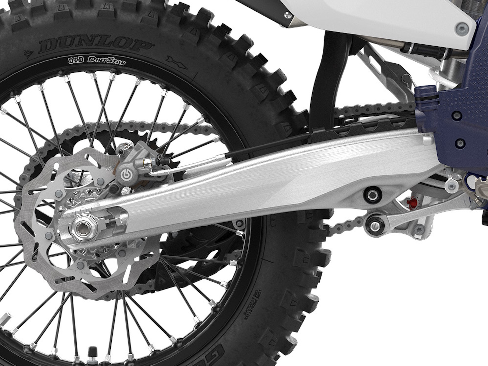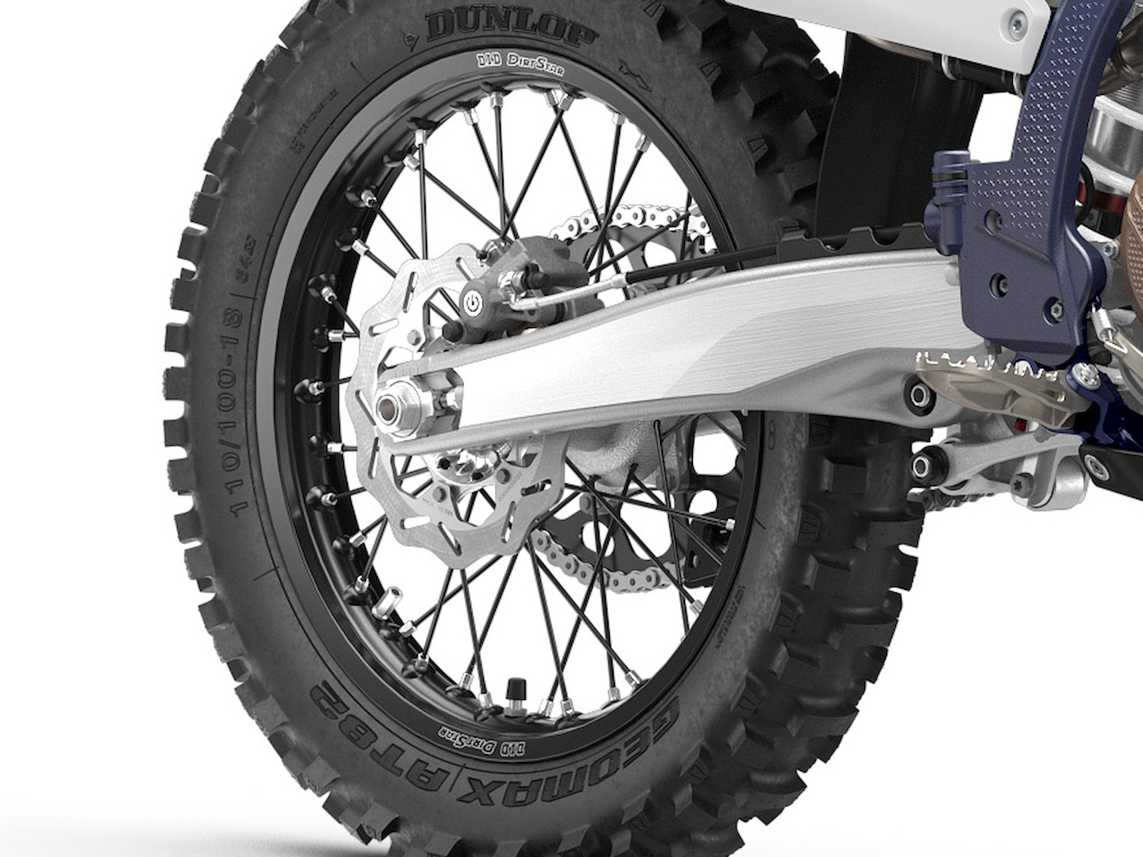 The FX 350 is the ultimate cross-country motorcycle. Its chassis delivers the agility of a 250, while the engine produces power comparable to a 450 for a perfect blend of rideability and performance. A close-ratio 6-speed gearbox, manufactured by Pankl Racing Systems, engages a specific engine map in each gear, which ensures a smooth delivery of power at all speeds. Assured comfort is provided by the WP suspension, which features settings developed for offroad riding, while smooth, ergonomic bodywork offers unrestricted movement for total control. The FX 350 features a distinctive colour scheme inspired by the brand's Swedish heritage, with graphics applied beneath the surface for a long-lasting finish.