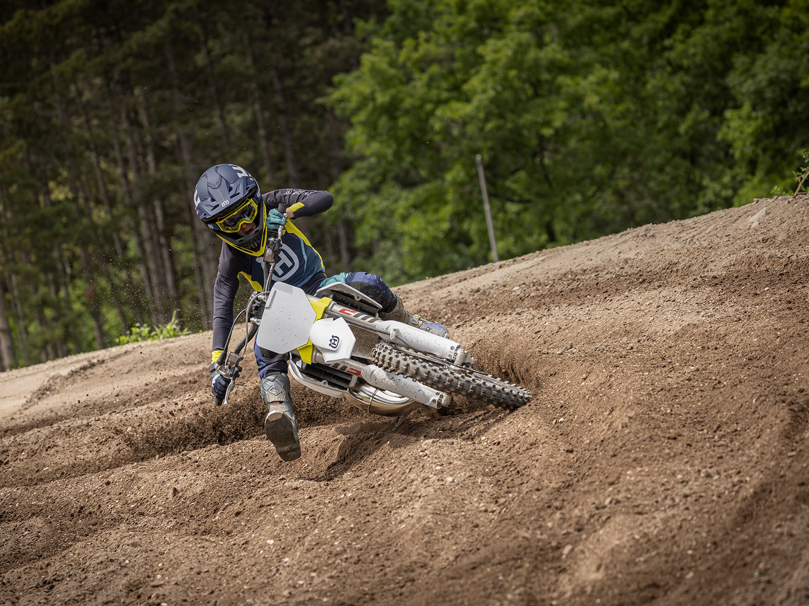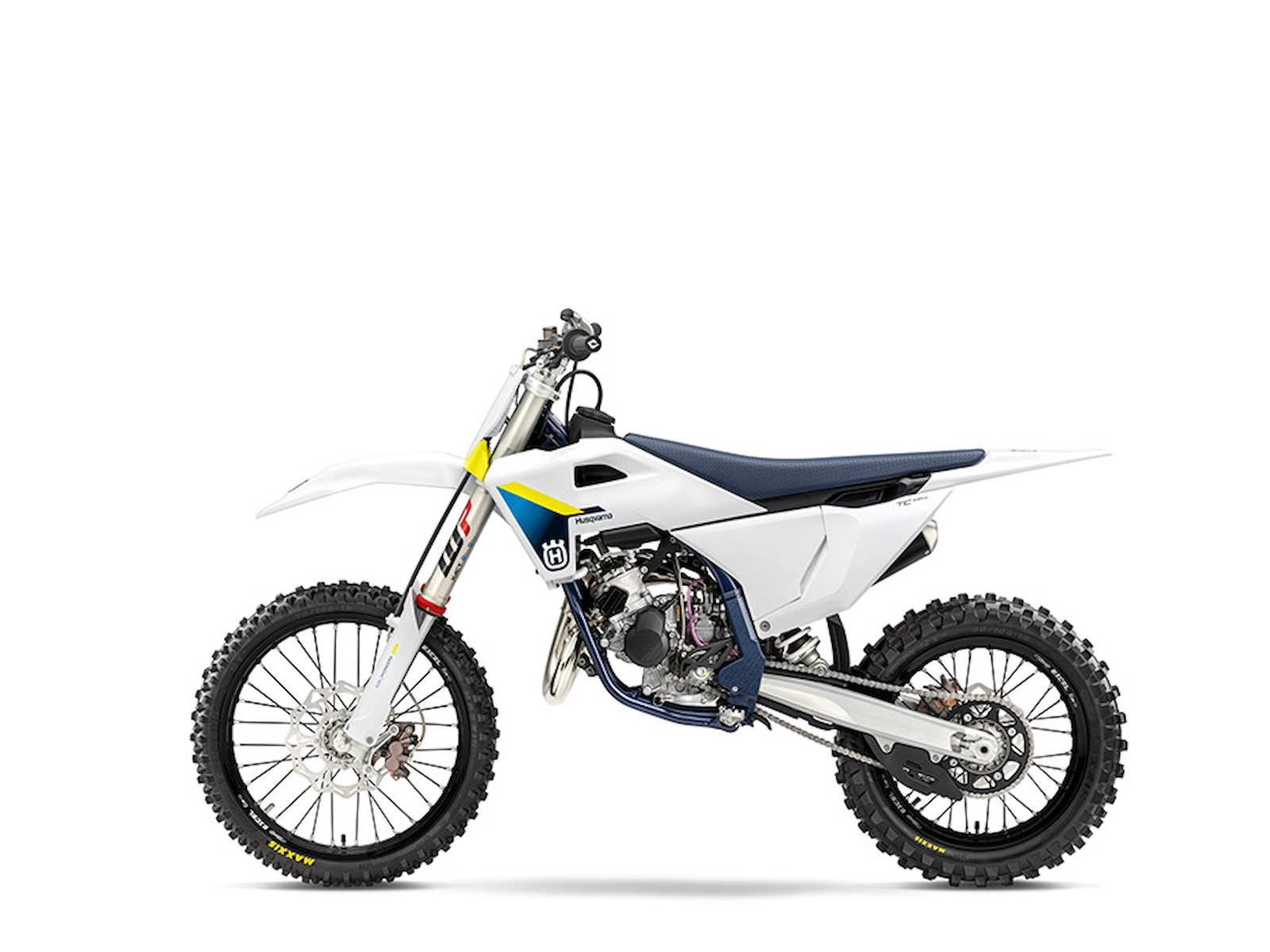With a 17" front wheel and 14" rear wheel, the smaller version of the TC 85 bridges the gap between the TC 65 and the larger TC 85 perfectly. The modern 85 cc 2-stroke engine is designed and built to deliver best-in-class performance, with the power customisable thanks to two pre-set maps. A tailored suspension set-up can be achieved easily using the adjustable WP components, while all riders will benefit from the light and agile chassis on track. An extensive list of race-tested parts from respected brands such as Formula, Galfer, Neken, Pankl, and Twin Air underlines the premium specification of the TC 85.
