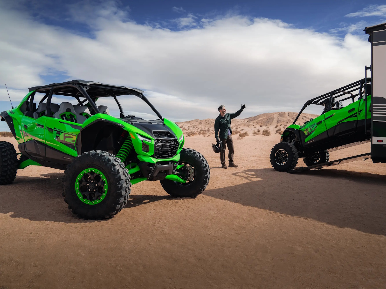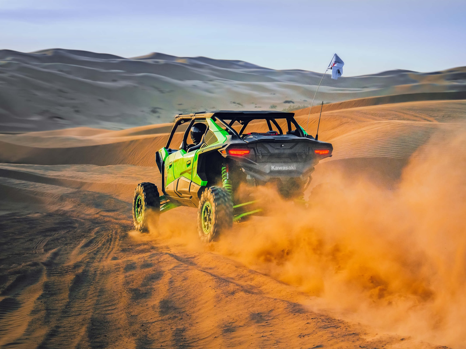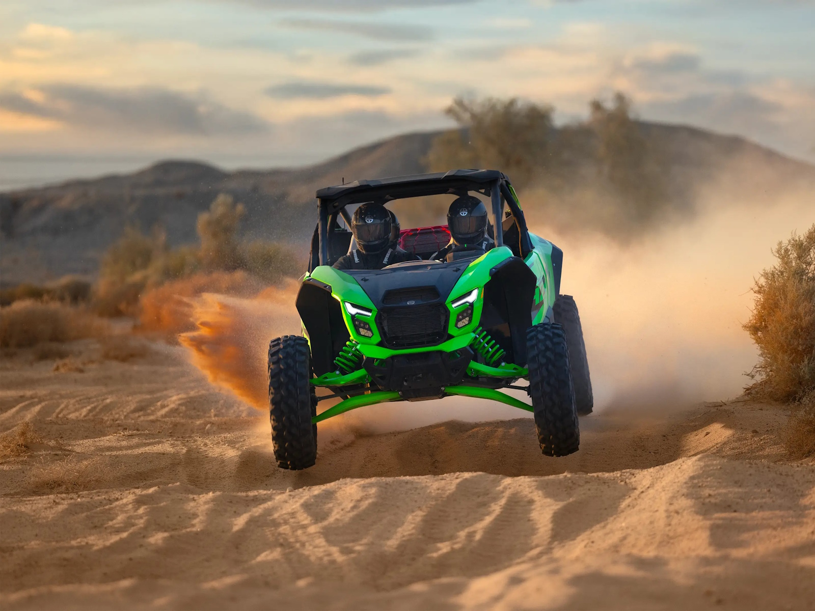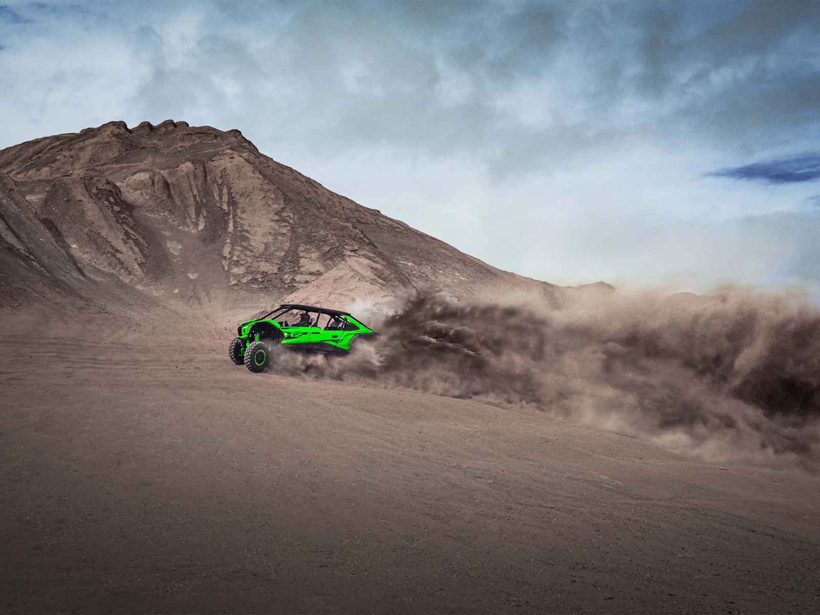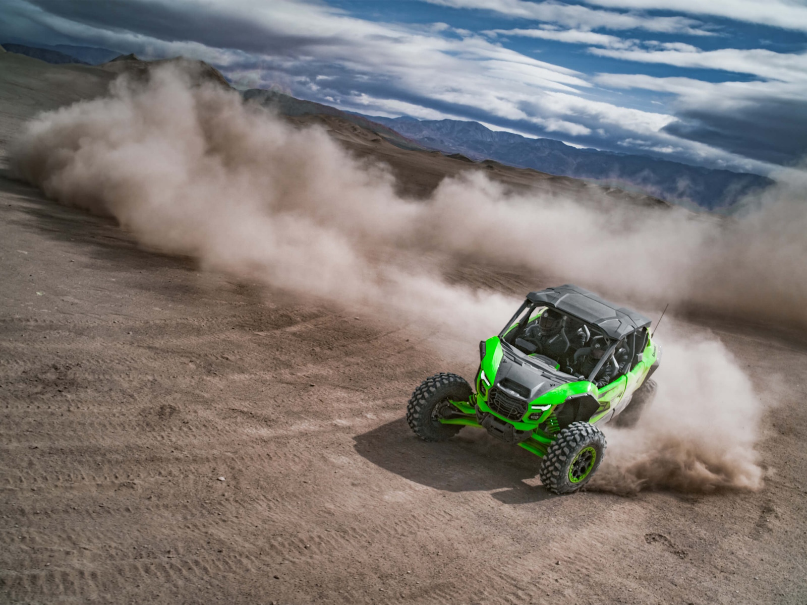 The all-new Teryx®4 H2 and Teryx®5 H2 high-performance side x sides are designed for dune and desert domination. The 250-HP¹ 999cc in-line 4-cylinder supercharged engine is harnessed by a continuously variable transmission (CVT) and a highly rigid frame complemented by long-travel suspension that helps balance the engine's massive power for maximum control. Predictable handling and confident stopping power add to the well-balanced package delivering maximum fun that can be shared with the whole family.