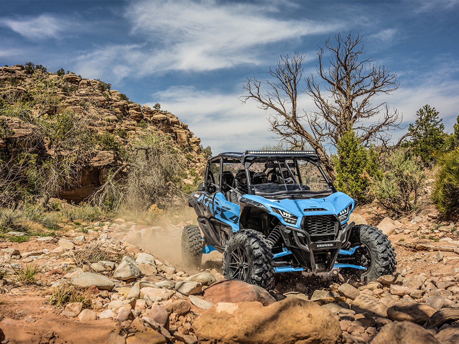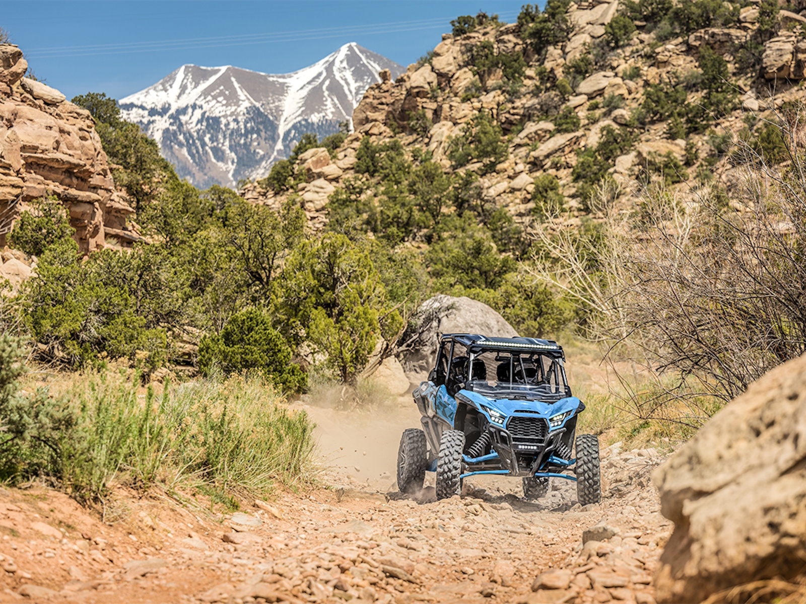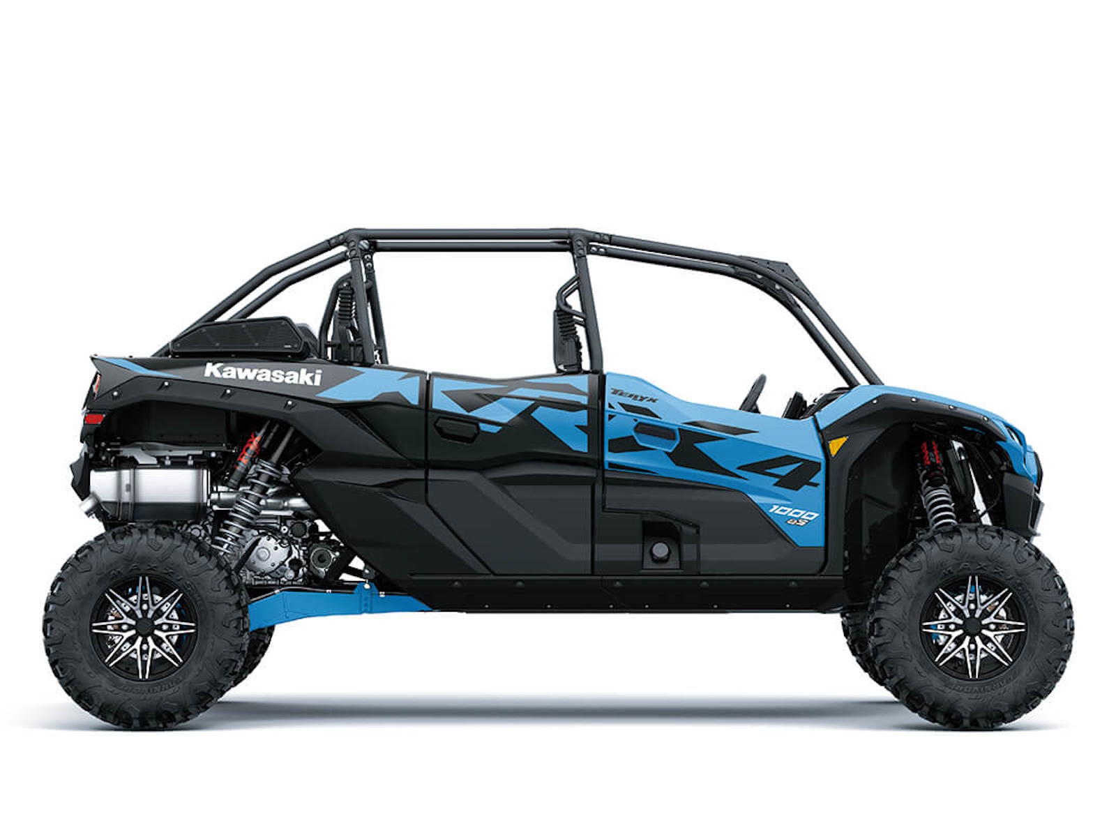 Dominate Adventure with more friends and family with 4-passenger seating on the new Teryx® KRX4™ 1000. With an enlarged chassis, no sacrifices were made to accommodate the additional passengers. Advanced suspension technology combined with beefy wheels and tires deliver the ultimate riding experience. The Teryx KRX4 1000 reinforces and elevates the reputation of purpose-built Kawasaki sport side x sides.