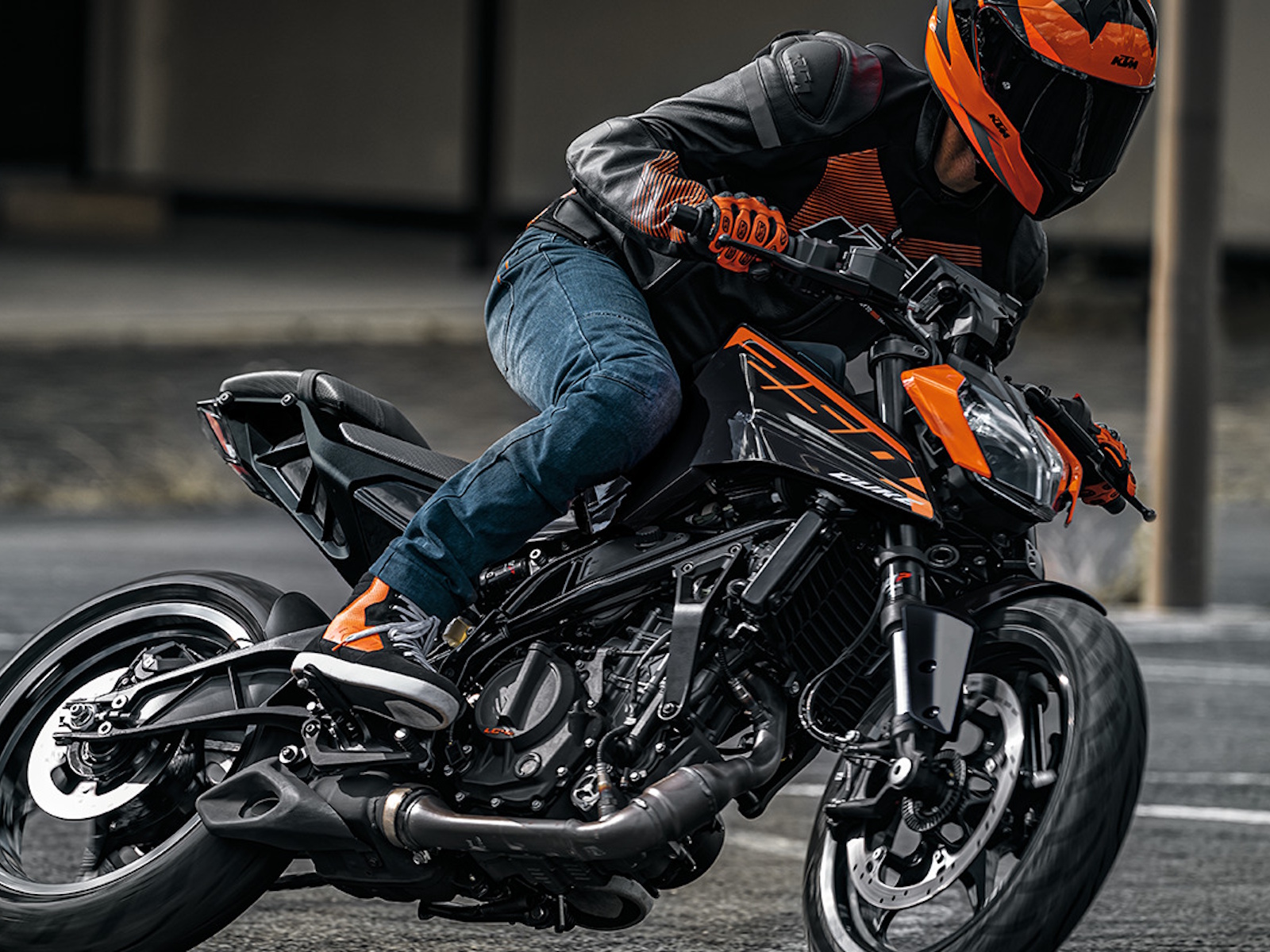 Boasting the latest generation in LC4c engines, the KTM 250 DUKE muscles up with more power, smoother acceleration, and lighter overall weight than before. Drawing from years of experience in the small engine game, the KTM 250 DUKE now also features an improved gearbox, and an optimized cylinder head. Oh, and did we mention it is also READY TO RACE?