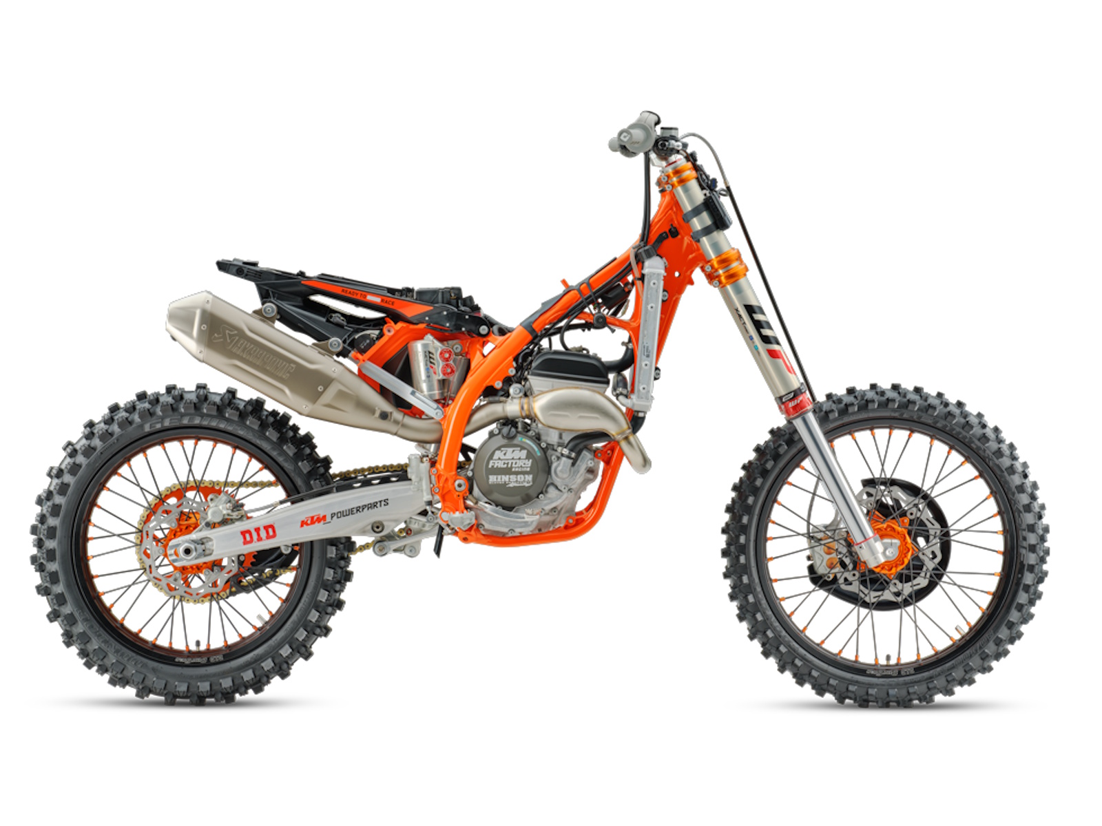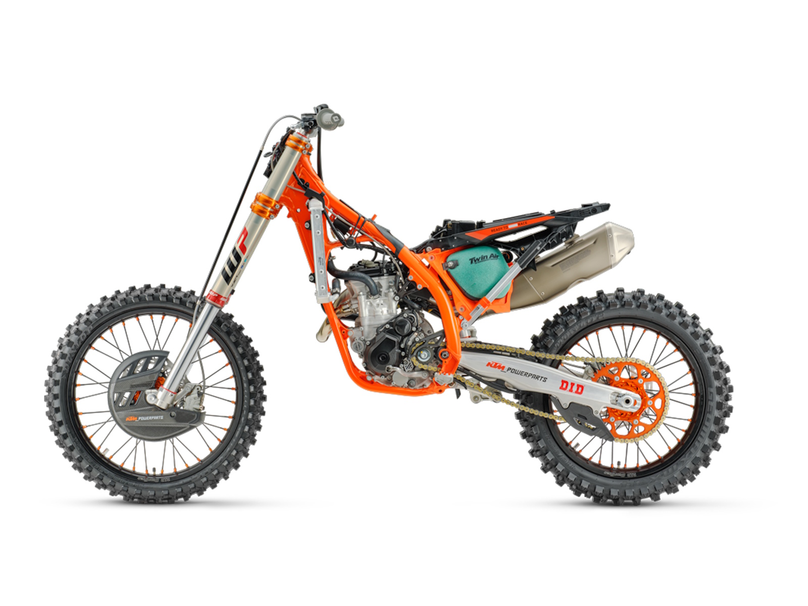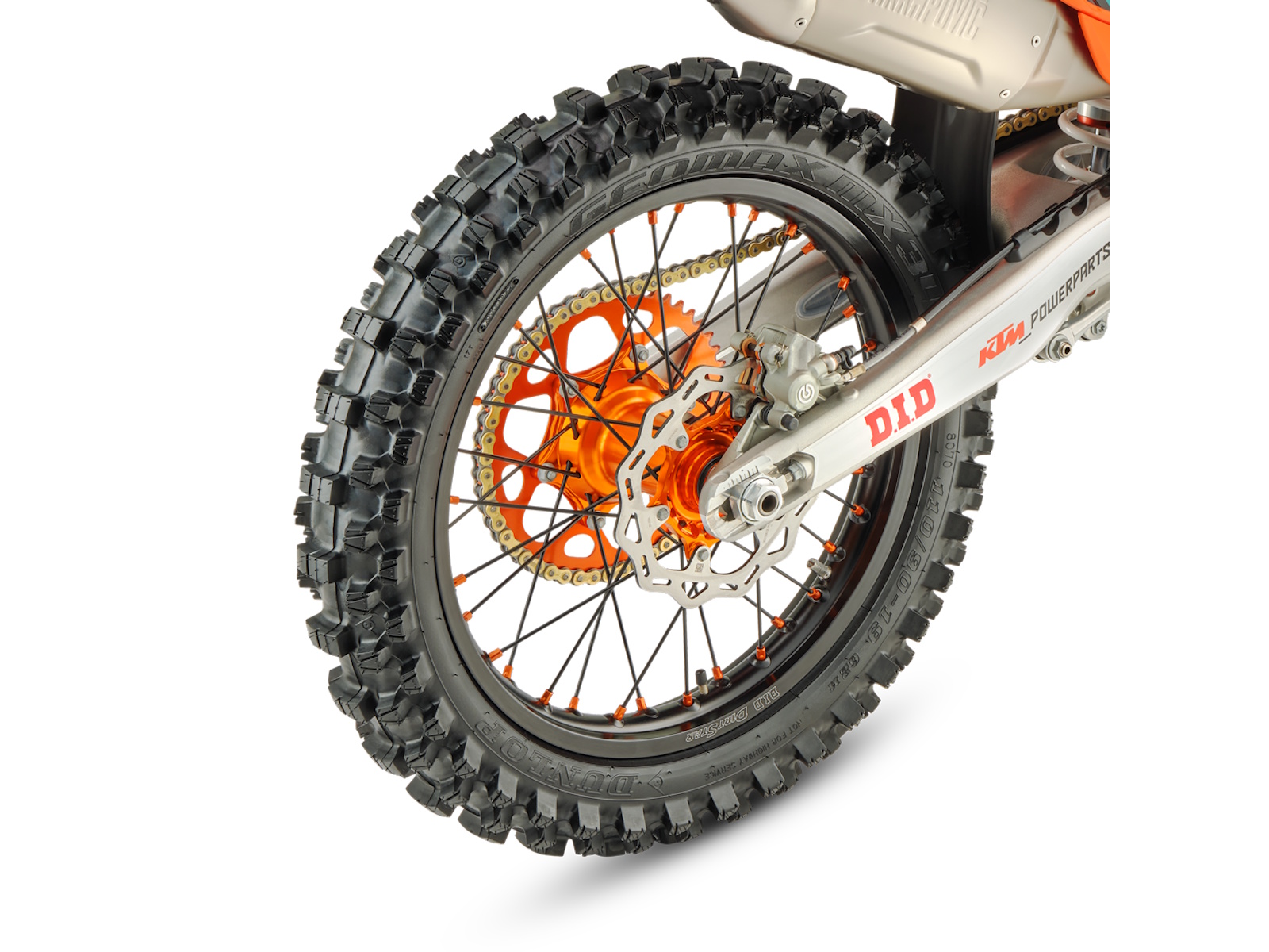 - Factory wheel set (black D.I.D DirtStar rim, black spokes, orange hubs and nipples)