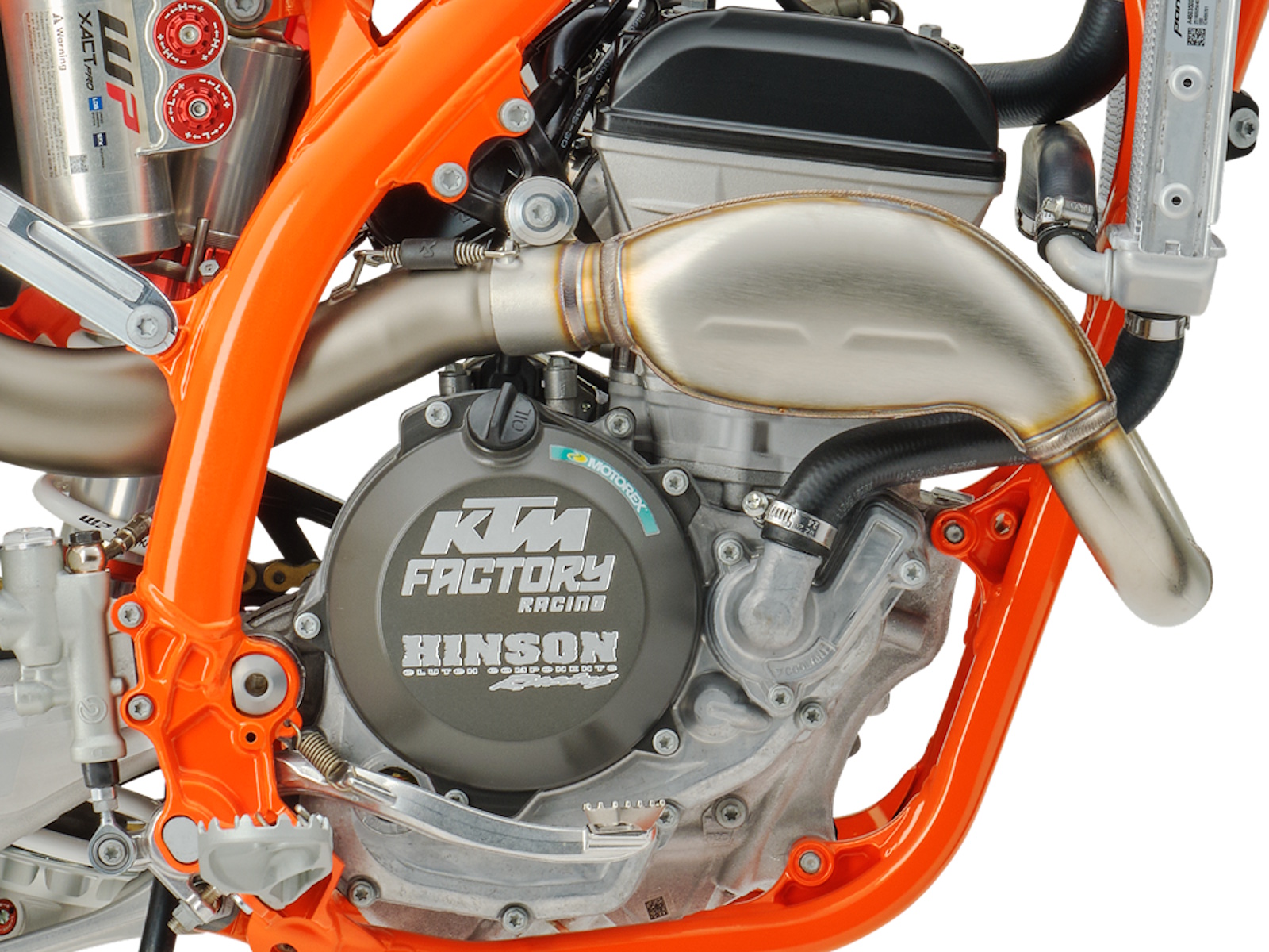 - The 48 mm WP XACT PRO 7548 fork, fitted as standard, represents the pinnacle of motocross suspension - adding a new layer of performance and adjustability. More than just suspension, it's a secret weapon for faster lap times and total confidence in every section of the track. It delivers unrivaled comfort, pinpoint response, and rock-solid bottoming resistance to the MY26 FACTORY EDITIONS. The XACT PRO 7548's unique valve system and friction-optimized components work in harmony to absorb harsh landings without compromising support, delivering consistent damping lap after lap and instilling rider confidence in all track conditions.