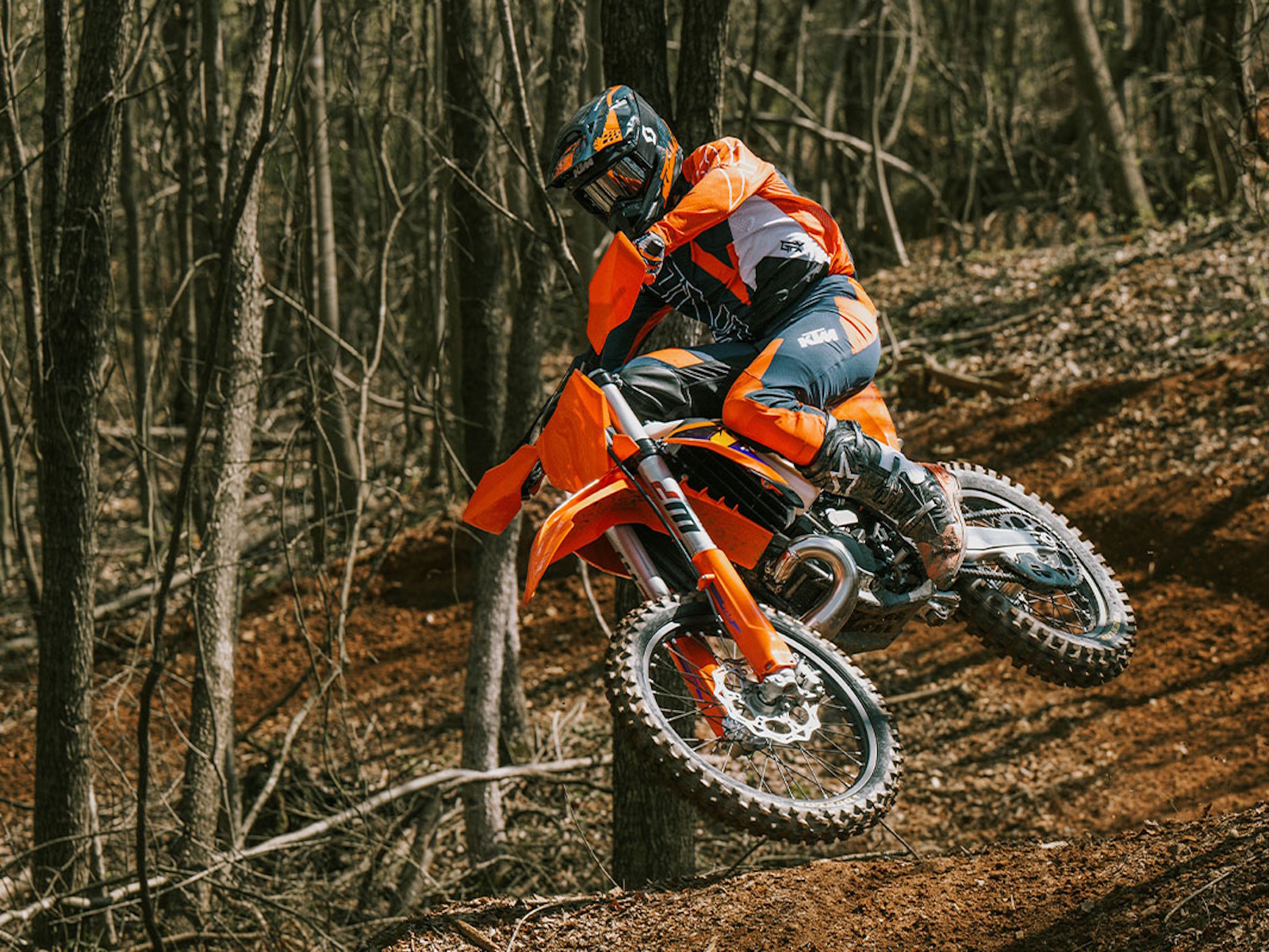 - A 72 mm bore, highly innovative electronic exhaust port management, and a machined finish for accurate port timing means the cylinder on the KTM 300 XC does more than just house the piston. It results in much-improved rideability, engine control, and more adjustability of the engine characteristics, thanks to 2 selectable and distinguished engine maps. Also, it's auto-calibrating, meaning there's no more hassle with wrong power valve adjustments.
