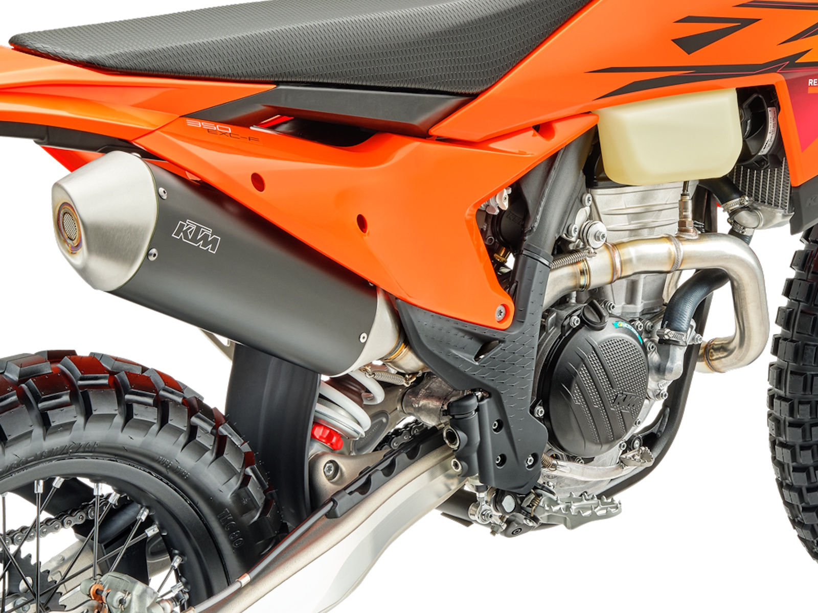 - Light, compact, and weighing only 63.4 lb (28.8 kg), the KTM 350 EXC-F engine is an outstanding bit of engineering. For 2025, the engine maintains its winning ways with a 2º backward tilt, impeccable center of gravity, and a high-revving, intelligent low-friction design, providing the goods at every twist of the throttle.