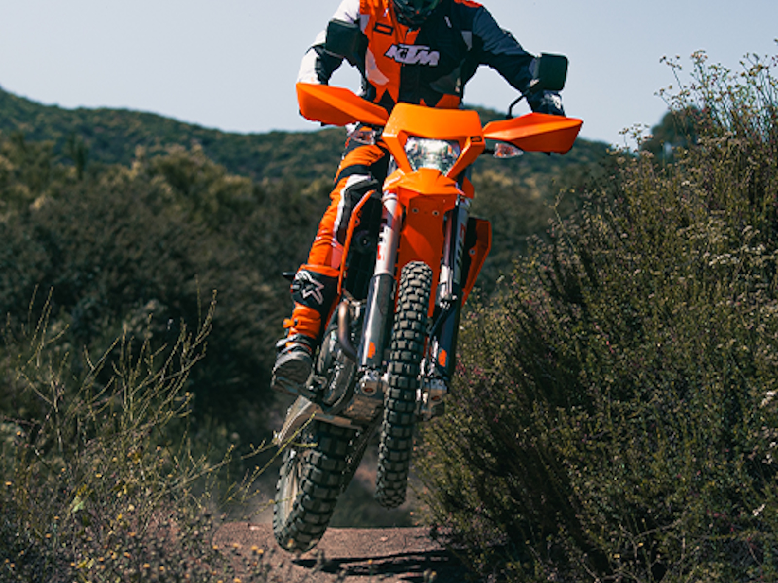 Widely known for its 250-like agility and 450-like power, the KTM 350 EXC-F has built a reputation for versatility. But, that doesn't mean it's compromised. Gaining instant recognition on its arrival in 2012, it has become a class-leading model due to its sheer rideability and competitive power output. Still, it brings an all-in attitude to the fray, charging toward the limit with next-level ability.