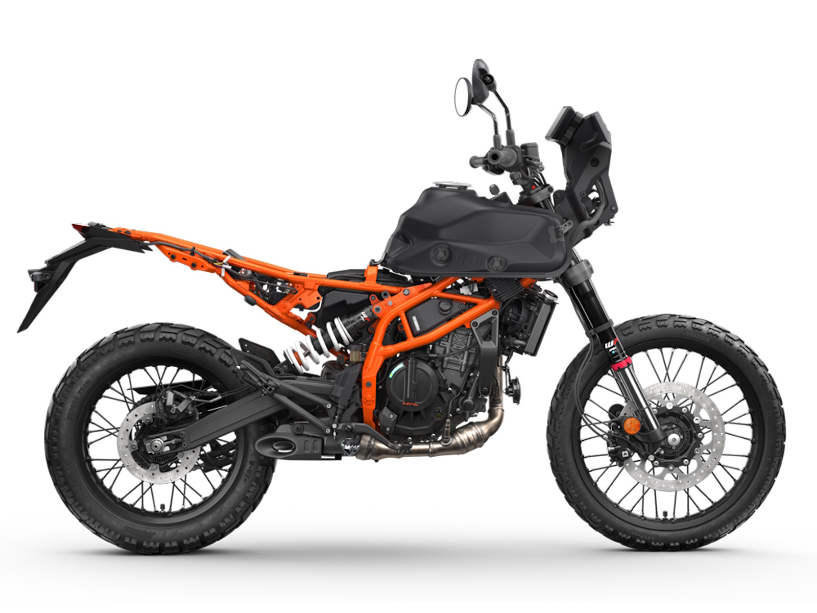 - The KTM 390 ADVENTURE range features distinctive KTM-style bodywork and graphics, providing excellent ergonomics and an aggressive look inspired by KTM's vast Rally racing heritage. This can be seen in everything from the headlight mask to the front fender. The tank spoilers and rear side panels are slightly wider than the seat for optimized control when standing on the pegs, while the shape of the fuel tank is optimized to offer freedom of movement when tackling tricky technical terrain. A robust engine guard also makes its intentions known by protecting the engine and exhaust when venturing off the tarmac into the dirt.