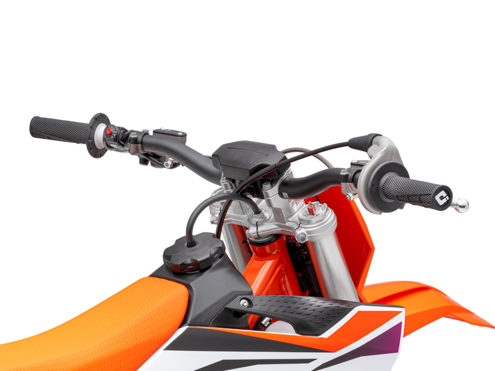 A digital ignition from Hidria finds its way onto the KTM 65 SX, with improved processing power and ignition curve, making for a cleaner burn and smoother power delivery. The throttle assembly benefits from a stabilization cap that extends the lifetime of the cable by reducing the risk of kinking and damage.