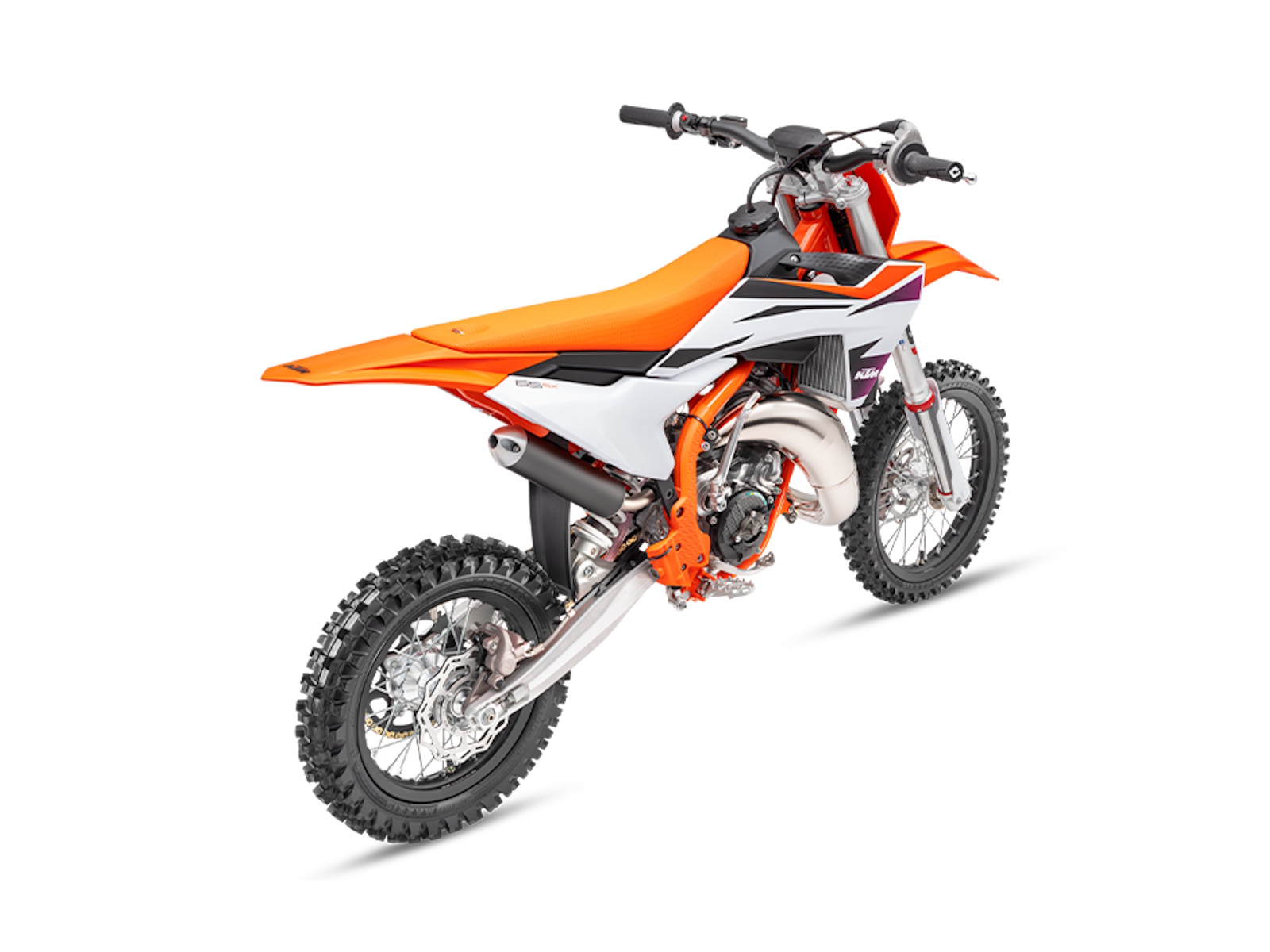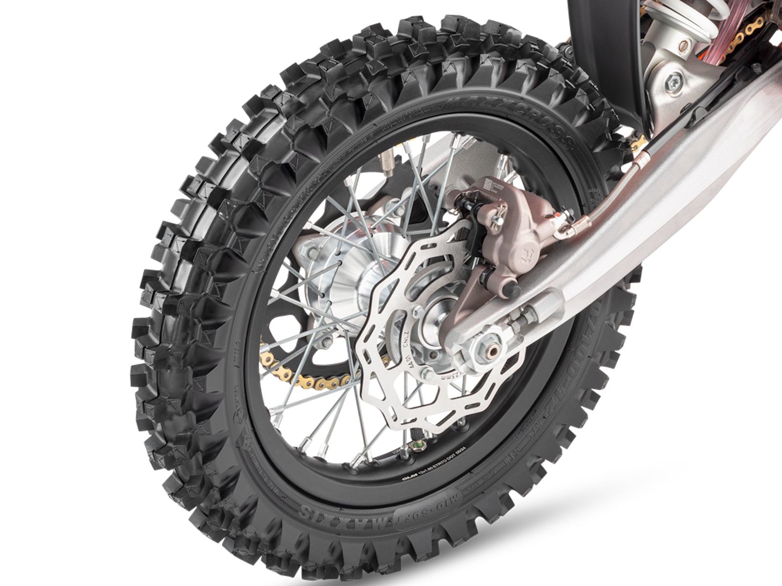 Rolling off the race rig and into the pit lane, the KTM 65 SX uses lightweight, black anodized, aluminum rims like the full-size KTM SX range. These provide the highest levels of strength and reliability, while MAXXIS MX-ST tires deliver outstanding performance on any terrain and exceptional straight-line stability.