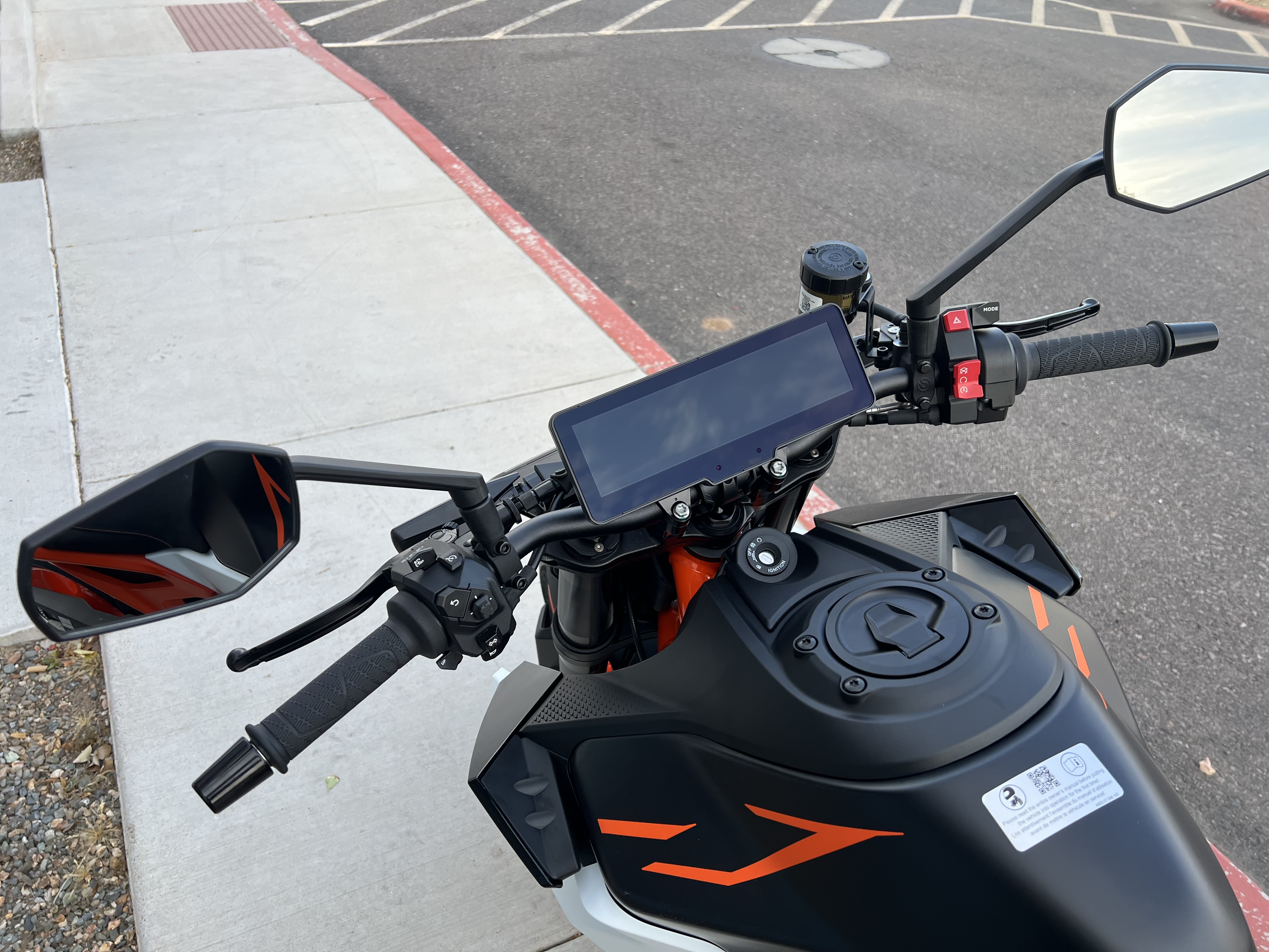 - Increased to 8.8" in size, the new TFT touchscreen landscape dashboard takes functionality to new heights with its intuitive design, packed with inductive technology. With improved readability and optimization at its core, it is absolutely READY TO RACE. Full information available in the KTM TECH GUIDE.
