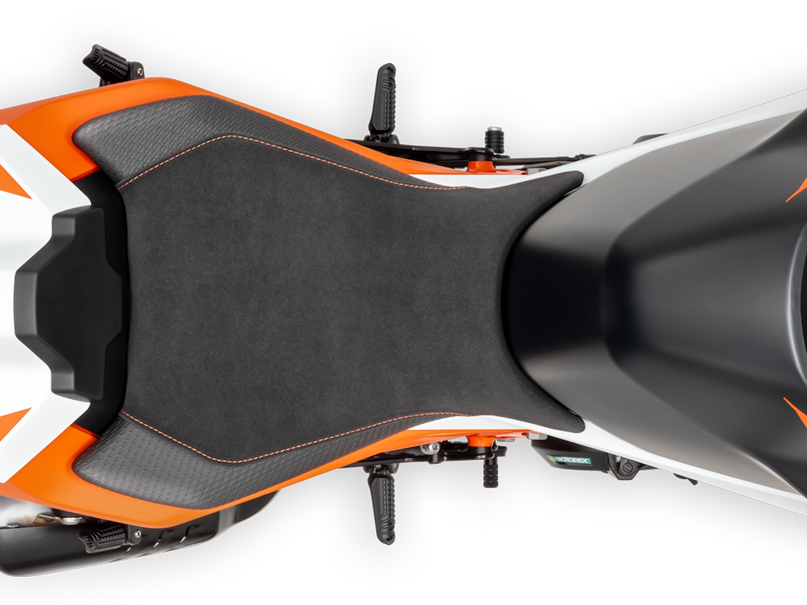 - Distinctive in function, and updated with aggressive intentions, the aluminum footpeg placement has been revised - now 33 mm backwards and 12.5 mm upwards. Because of that, the rider will enjoy more lean angle enabling fast riding.