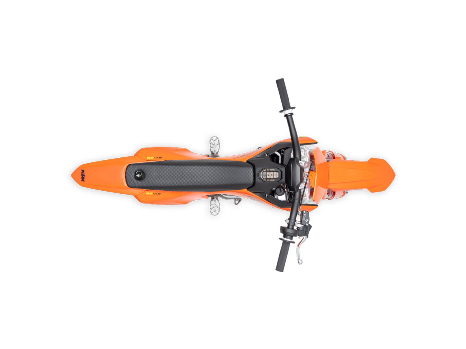 - The seat height on the KTM SX-E 5 can be adjusted to multiple levels. The standard model comes with a seat height variance window of 24.9-26.8 in (634-682 mm) and can be changed in two easy steps by lowering the bodywork and seat and mounting the rear shock in an alternative position. The front fork can also be lowered in the triple clamps.
